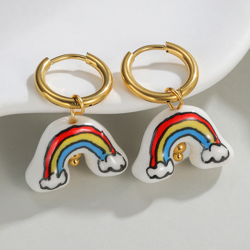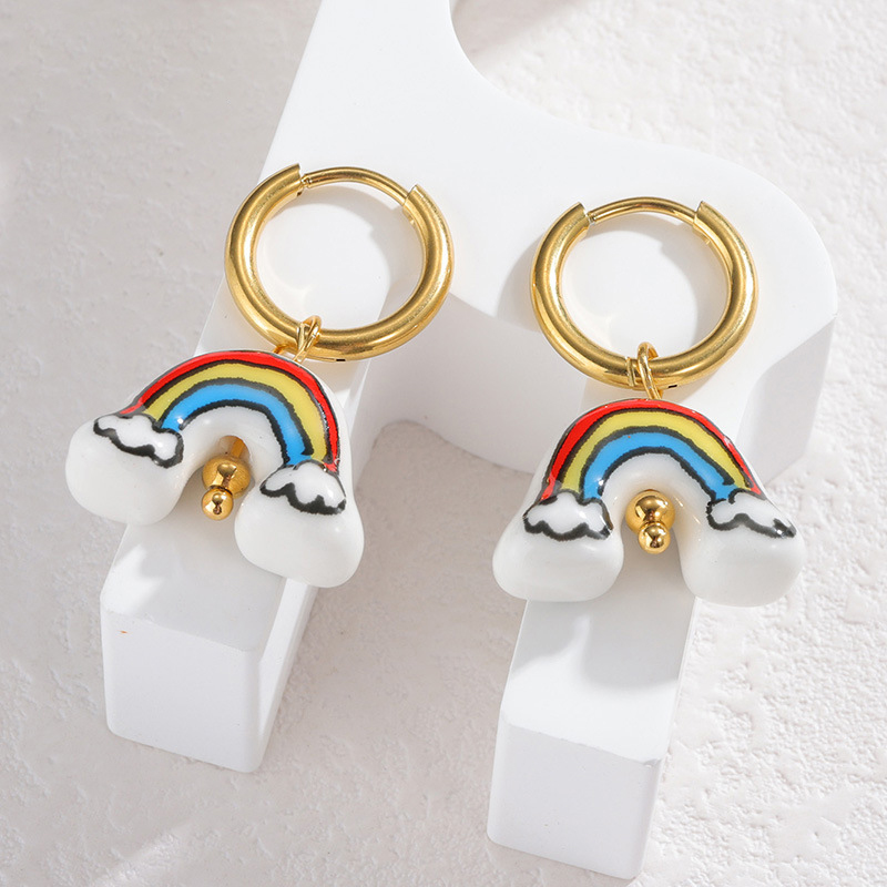 Stainless Steel Drop Earring, 304 Stainless Steel, with Porcelain, plated, fashion jewelry & for woman, golden, Sold By Pair
