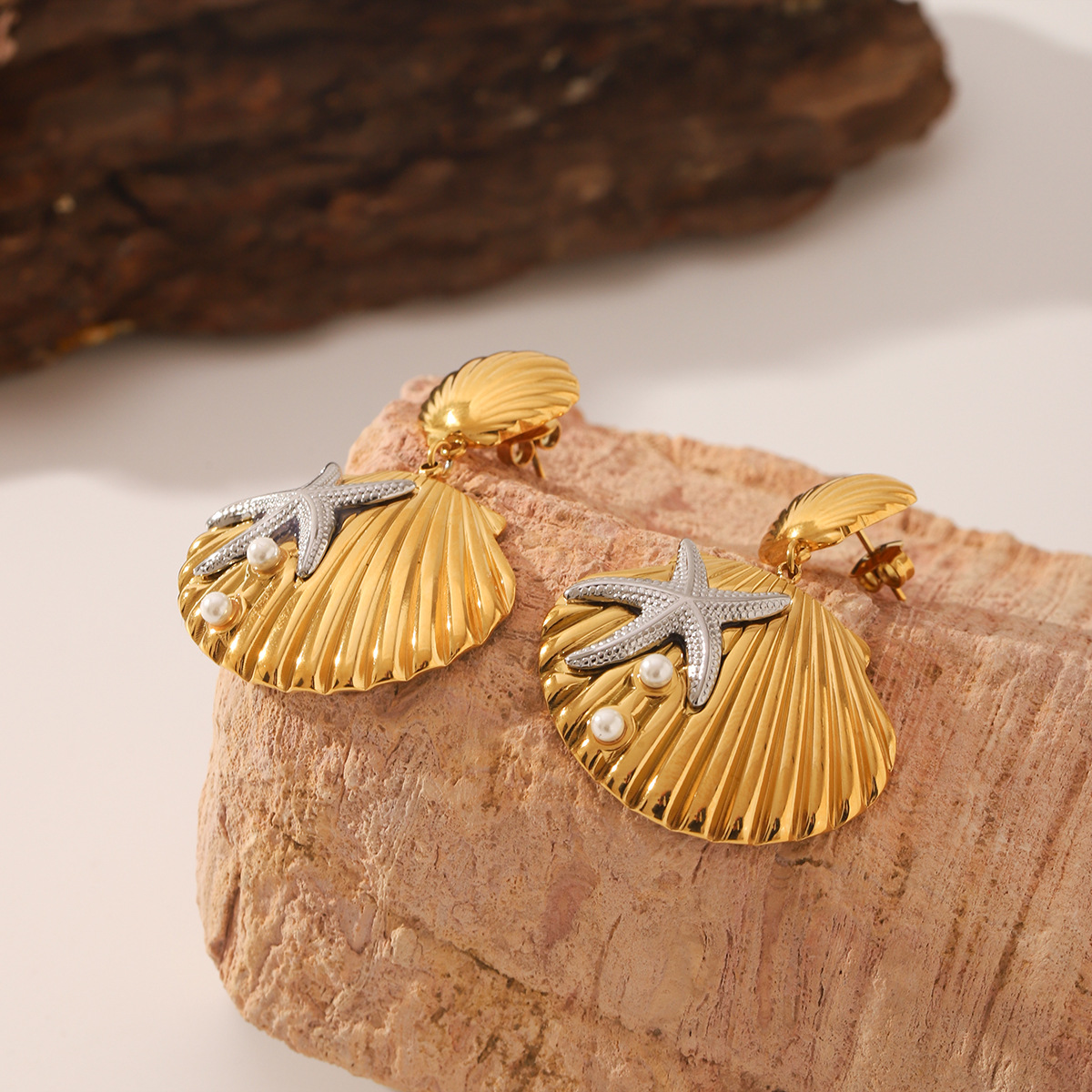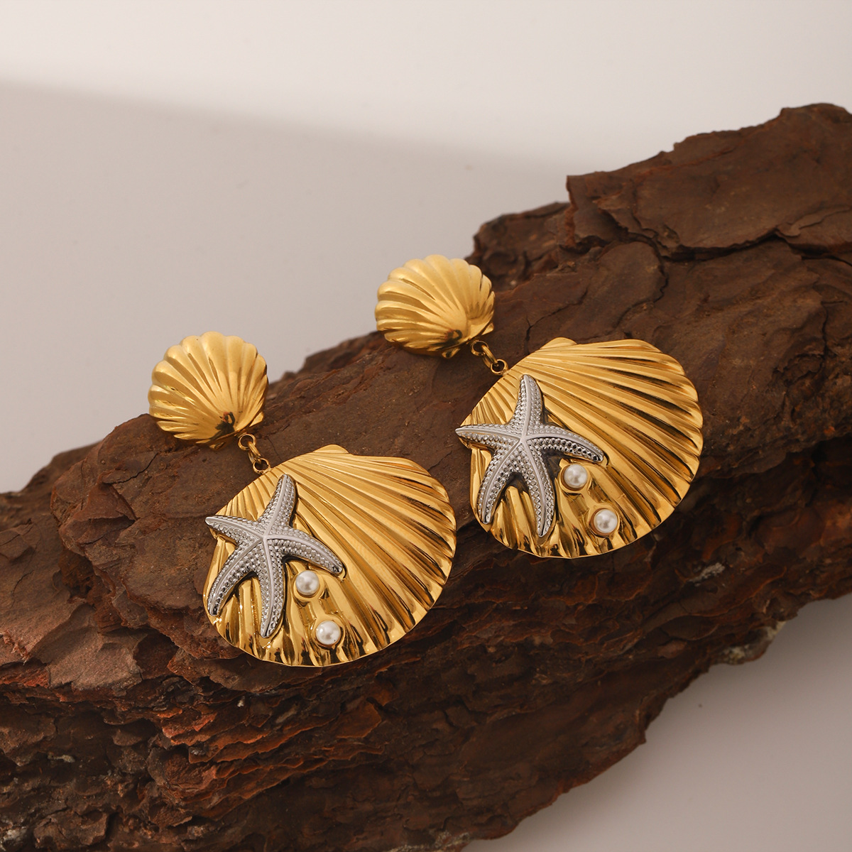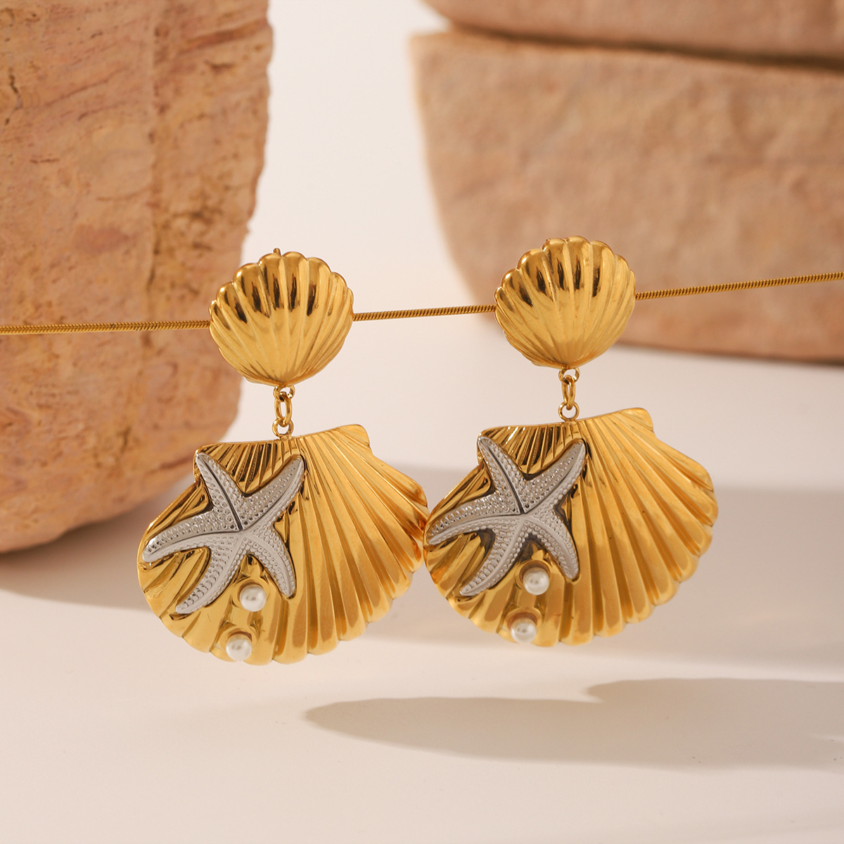 Stainless Steel Drop Earring, 304 Stainless Steel, with Shell Pearl, Shell, plated, fashion jewelry & for woman & two tone, Sold By Pair