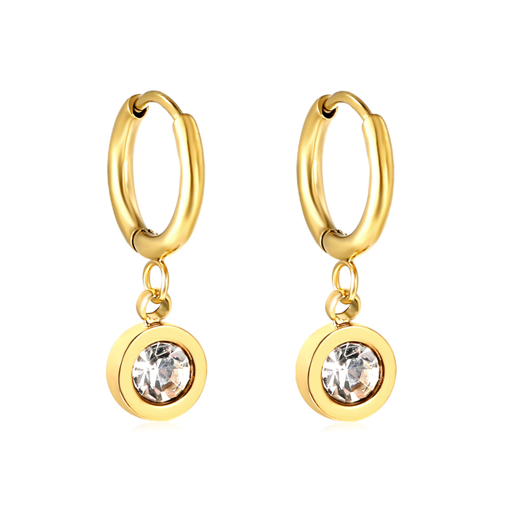 Stainless Steel Drop Earring, with Resin Rhinestone, Flat Round, gold color plated, for woman 12mm