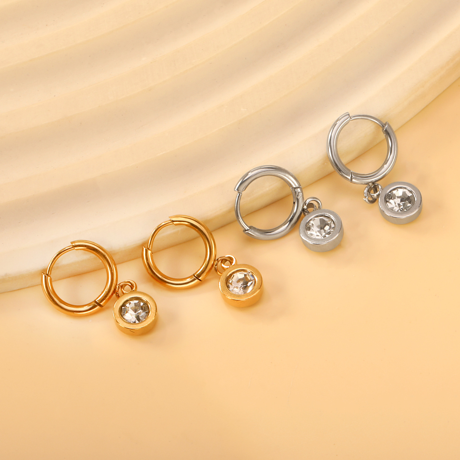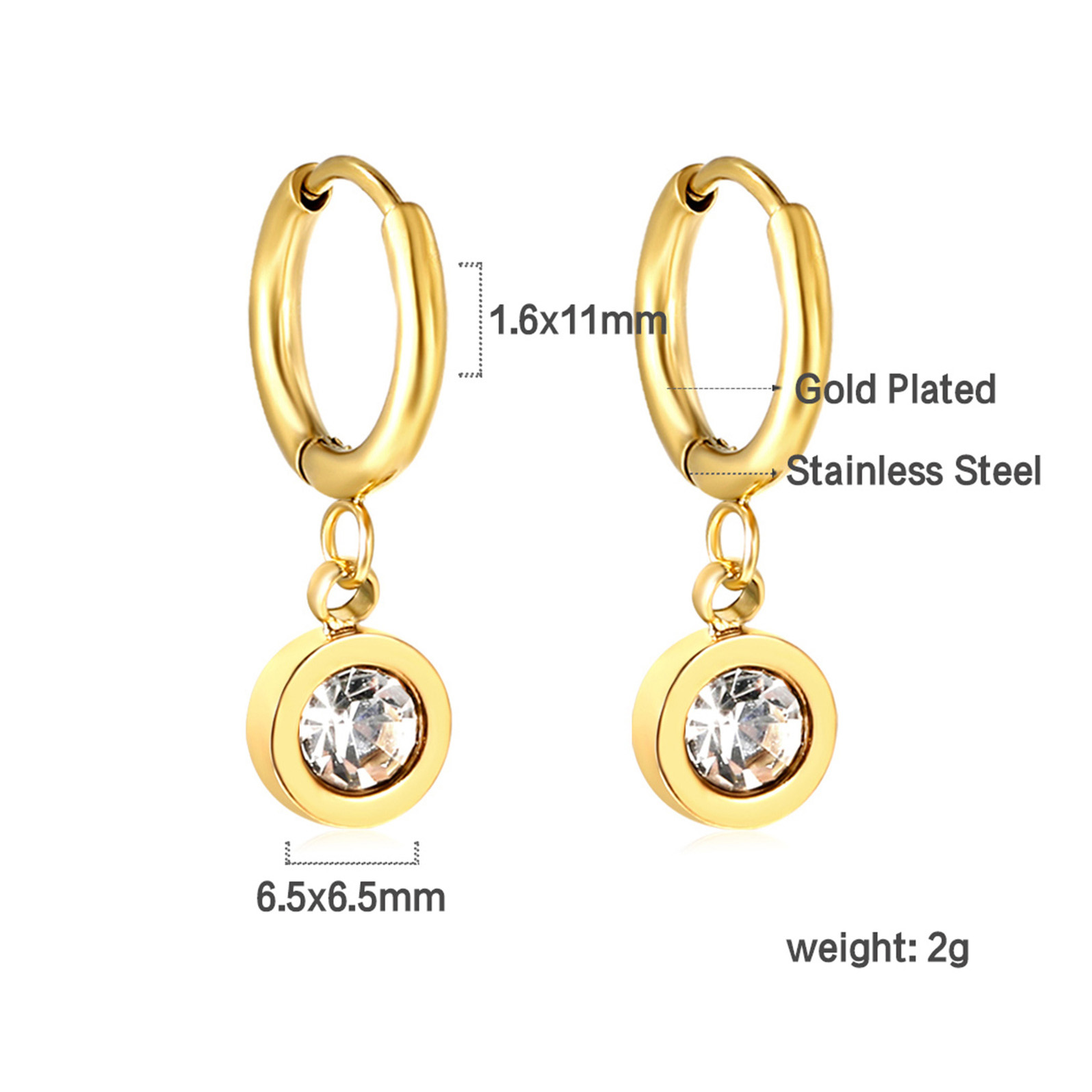 Stainless Steel Drop Earring, with rhinestone, original color  0.8mm
