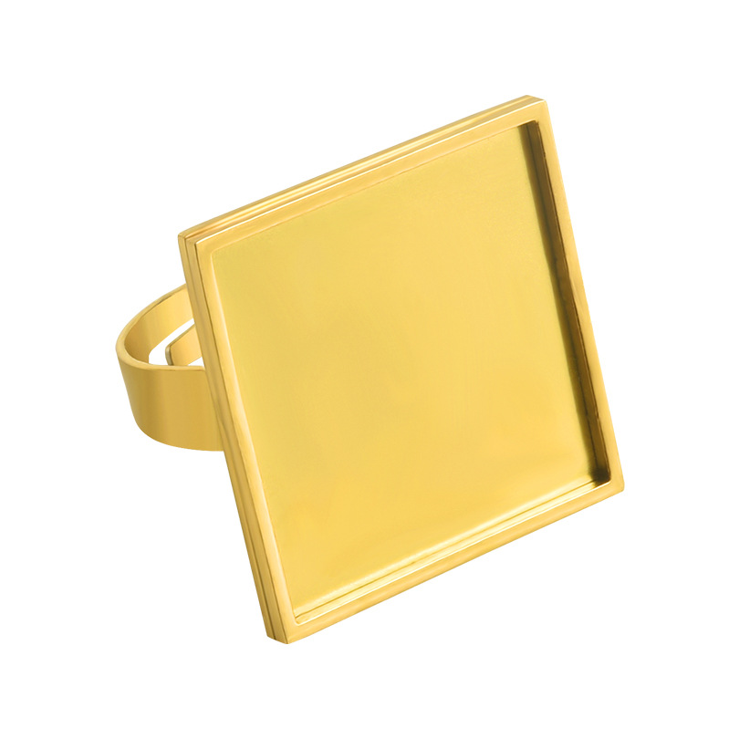 Stainless Steel Finger Ring Setting, Flat Round, plated 16mm, Inner Approx 21mm, US Ring .5