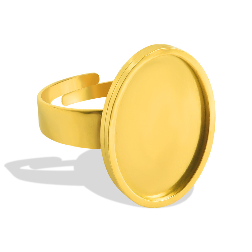 Stainless Steel Finger Ring Setting, Flat Round, plated 16mm, Inner Approx 21mm, US Ring .5