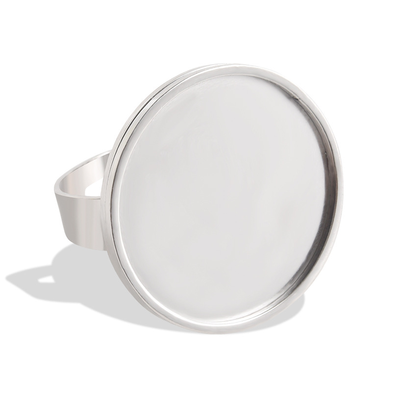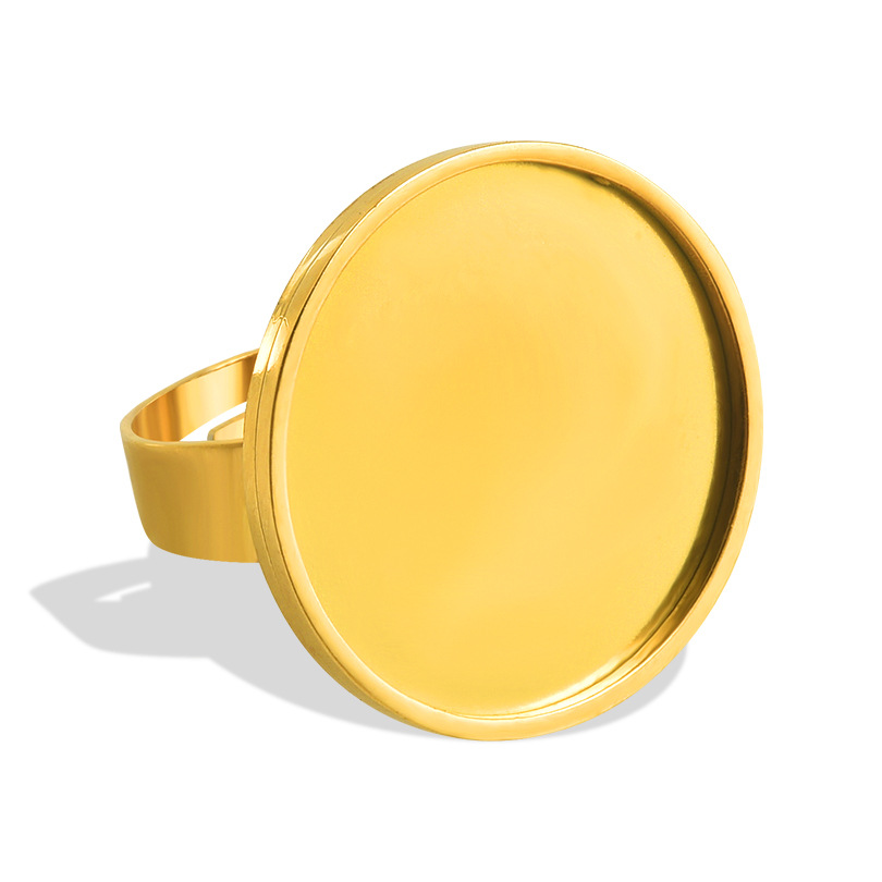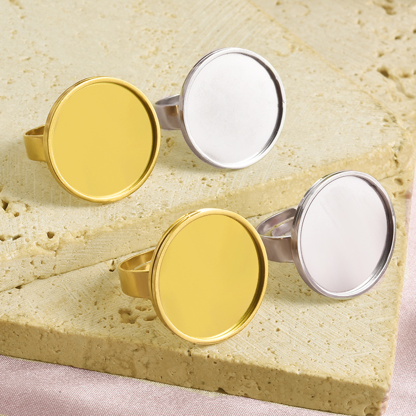 Stainless Steel Finger Ring Setting, Flat Round, plated 16mm, Inner Approx 21mm, US Ring .5
