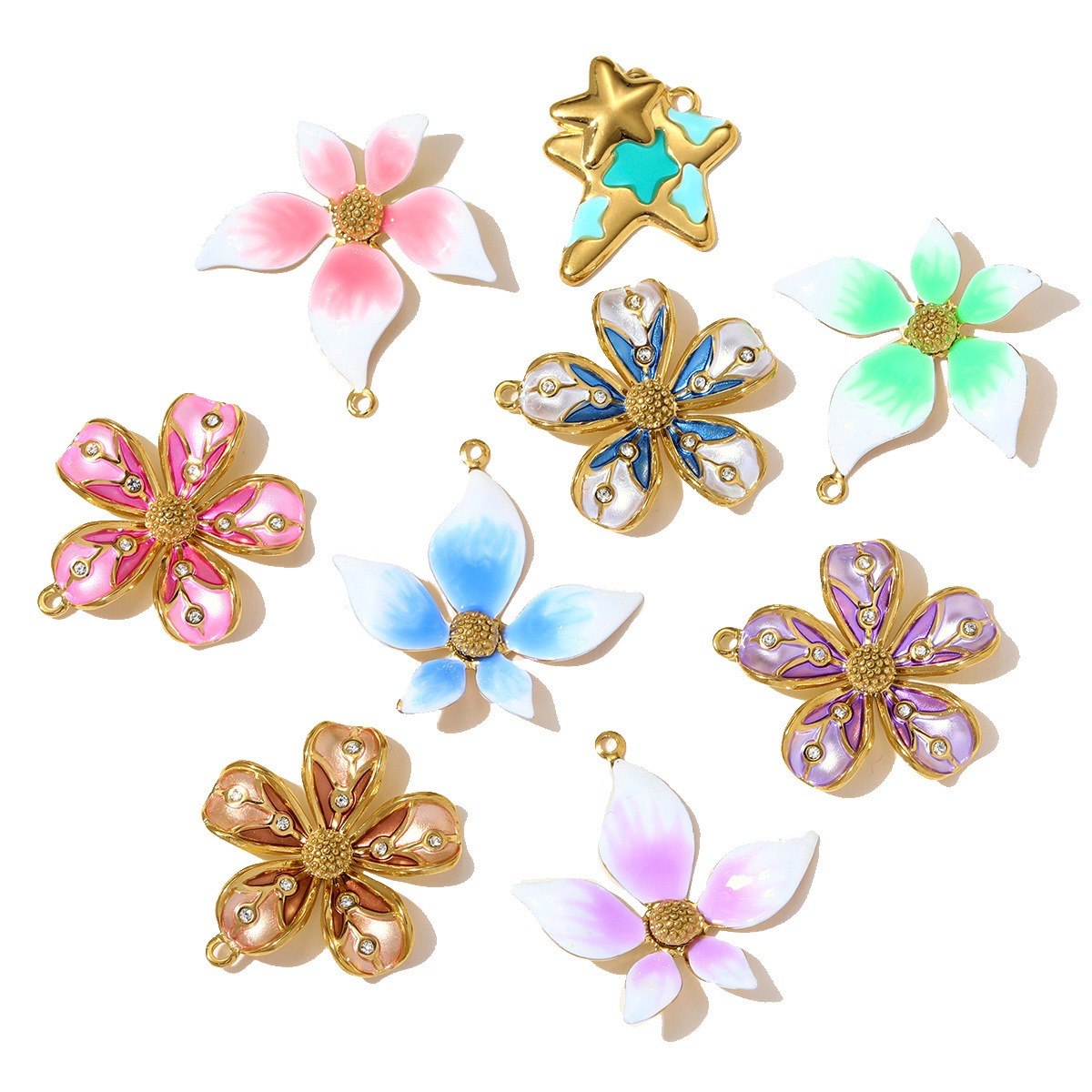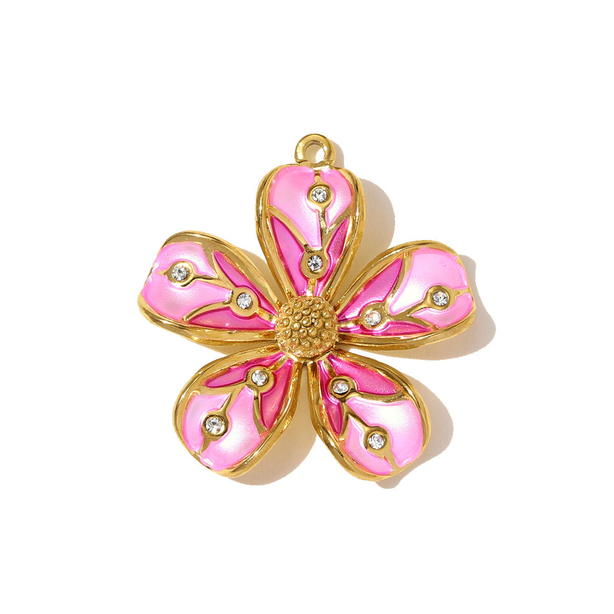 Stainless Steel Flower Pendant, 304 Stainless Steel, plated, DIY & different styles for choice & enamel & with rhinestone, 3PCs/Bag, Sold By Bag