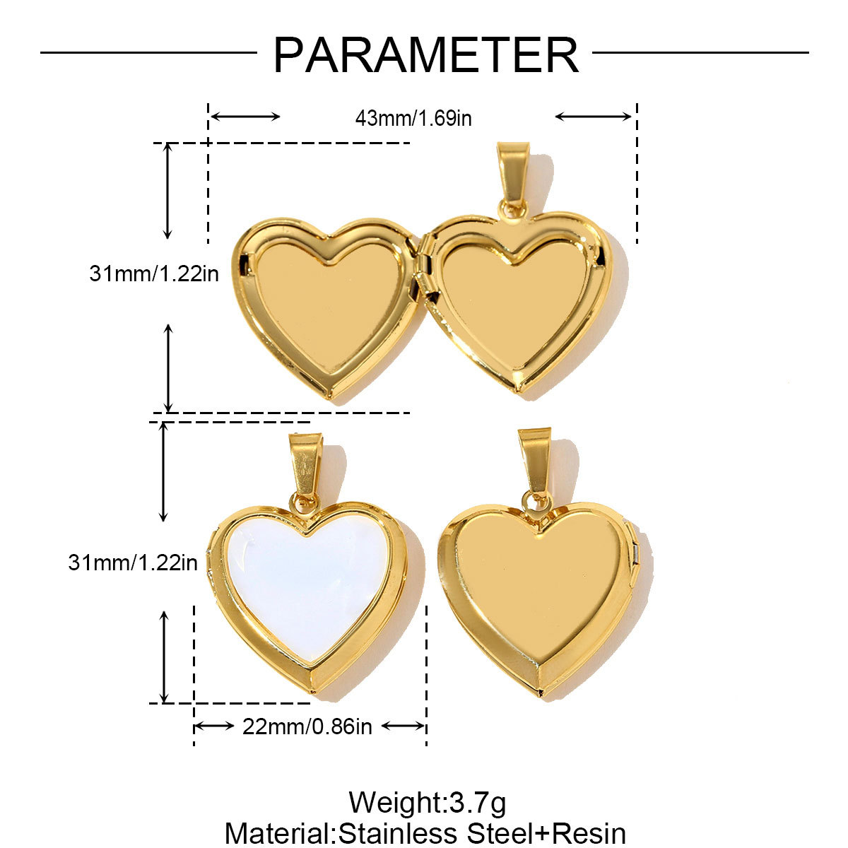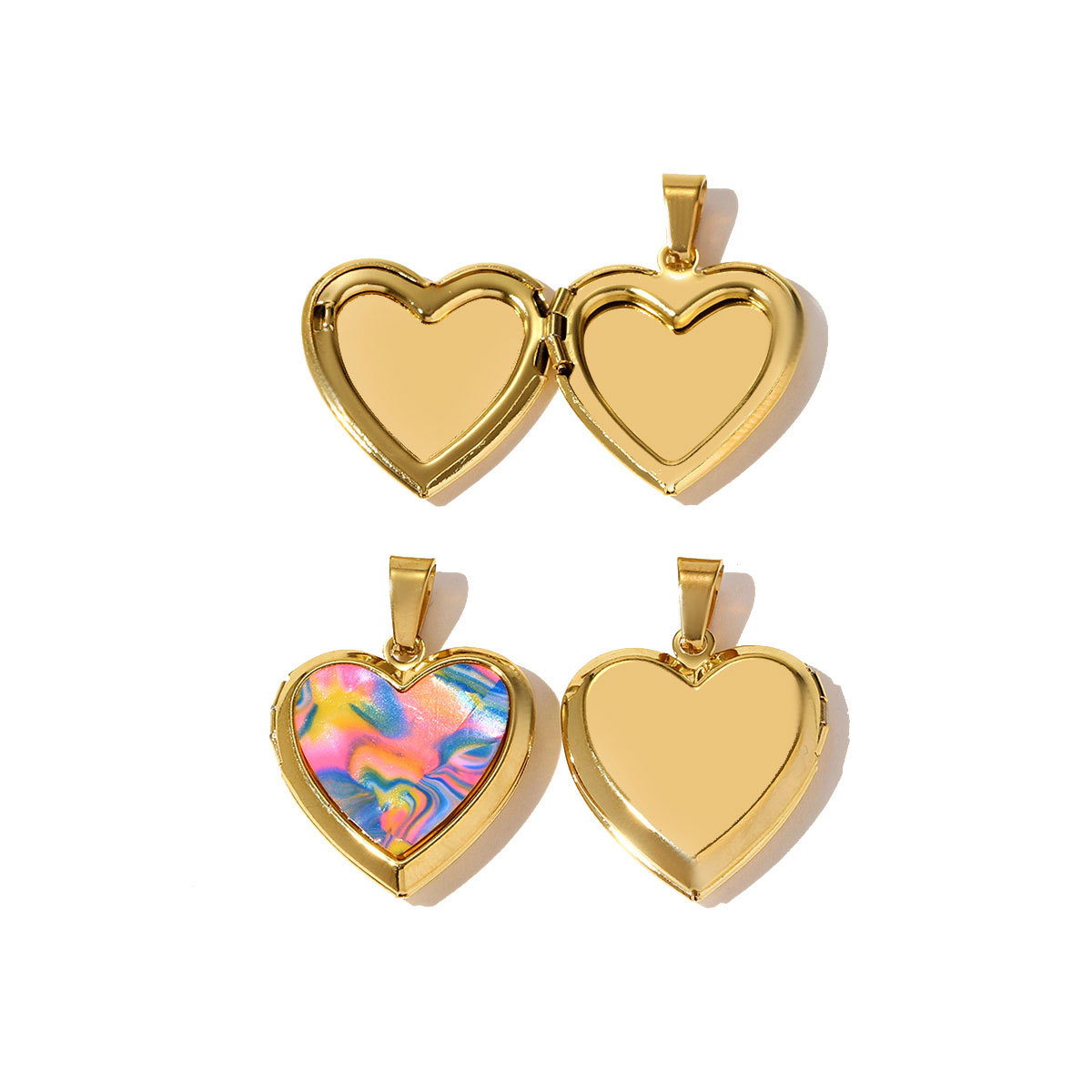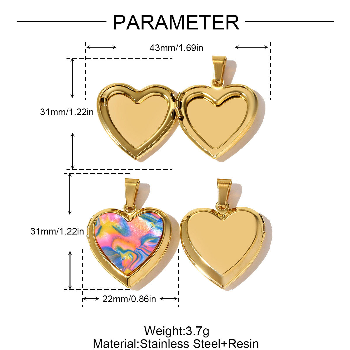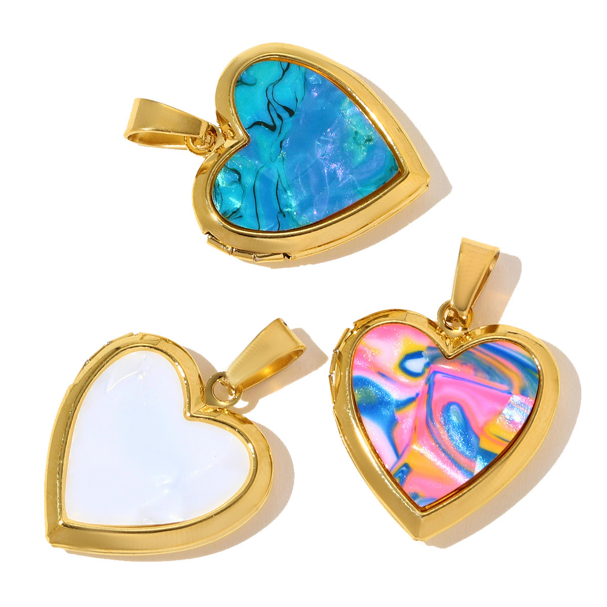 Stainless Steel Locket Pendant , 304 Stainless Steel, with Resin, Heart, gold color plated, DIY, more colors for choice, 3PCs/Bag, Sold By Bag
