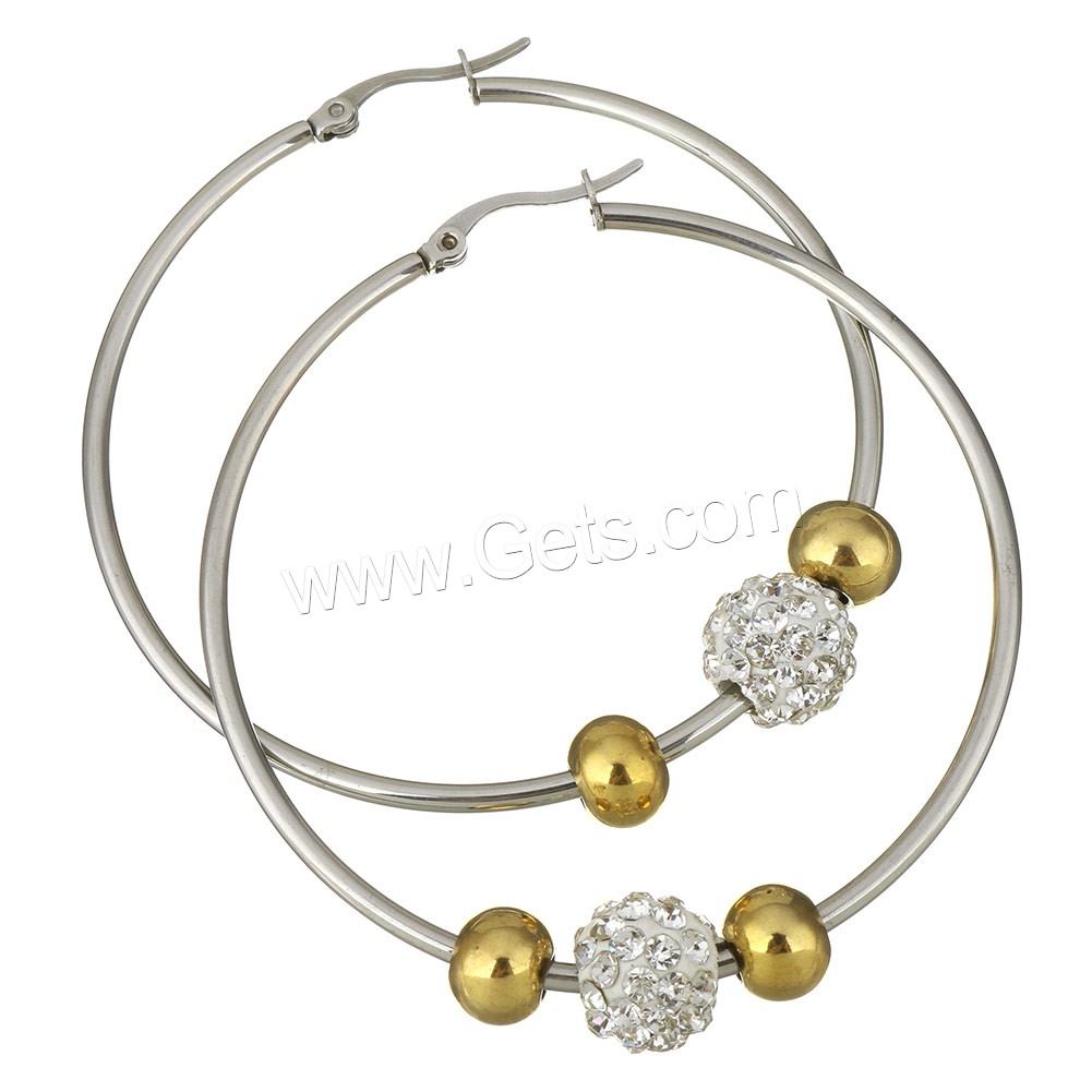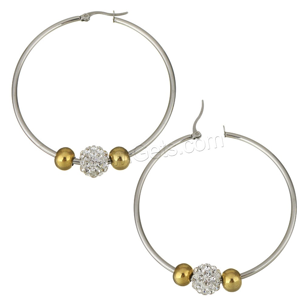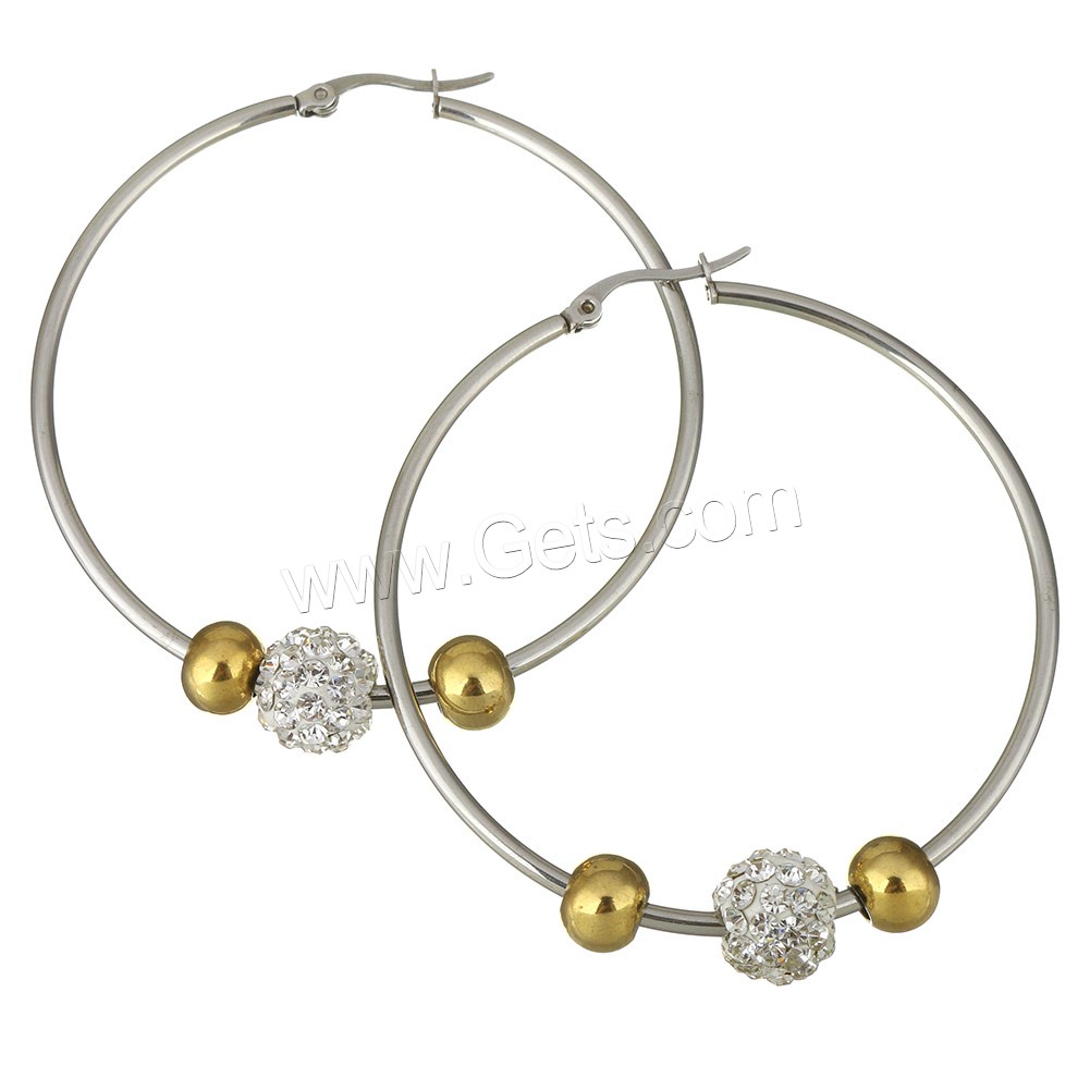 Stainless Steel Hoop Earring, with Rhinestone Clay Pave Bead, plated, for woman, 54x56mm, 6x8mm, 9x10mm, Sold By Pair