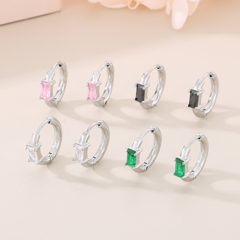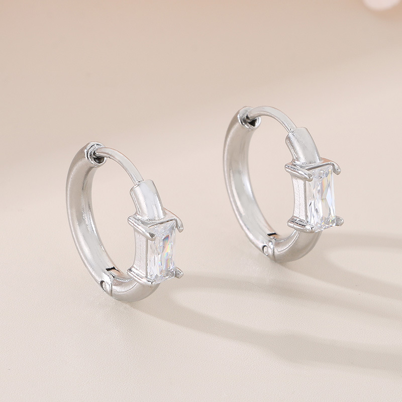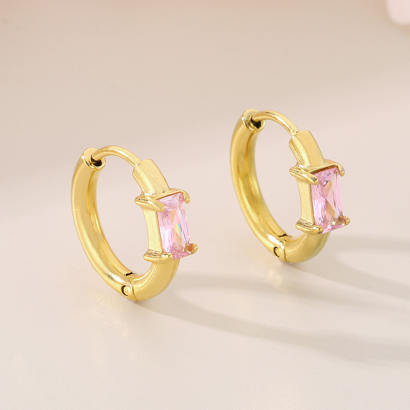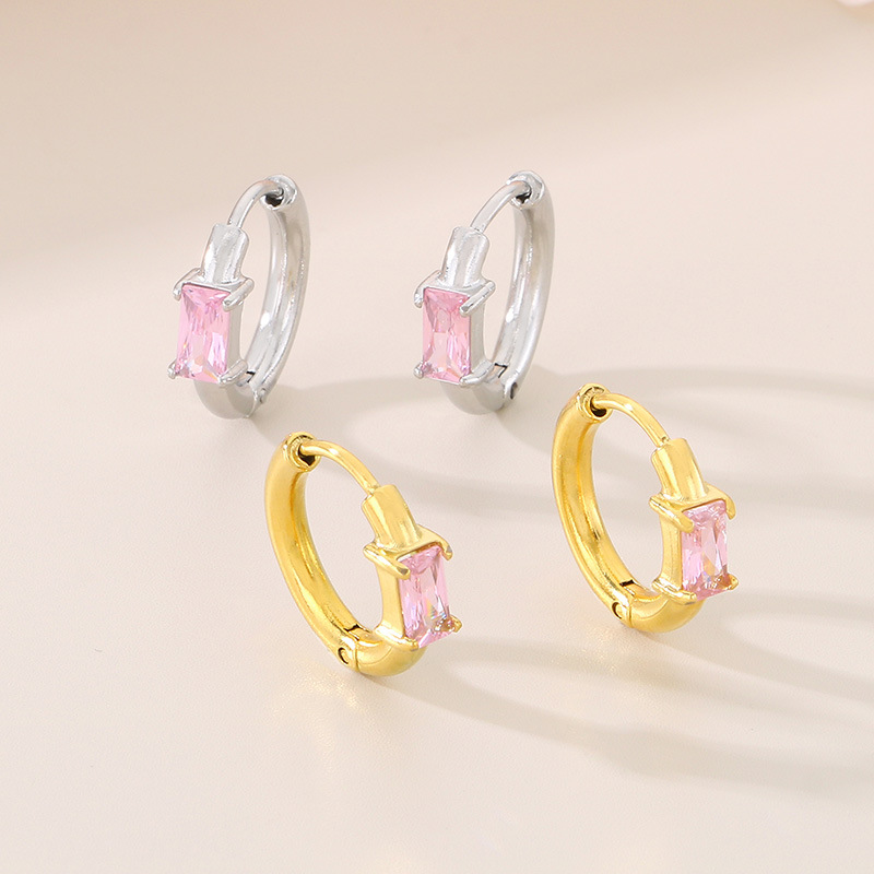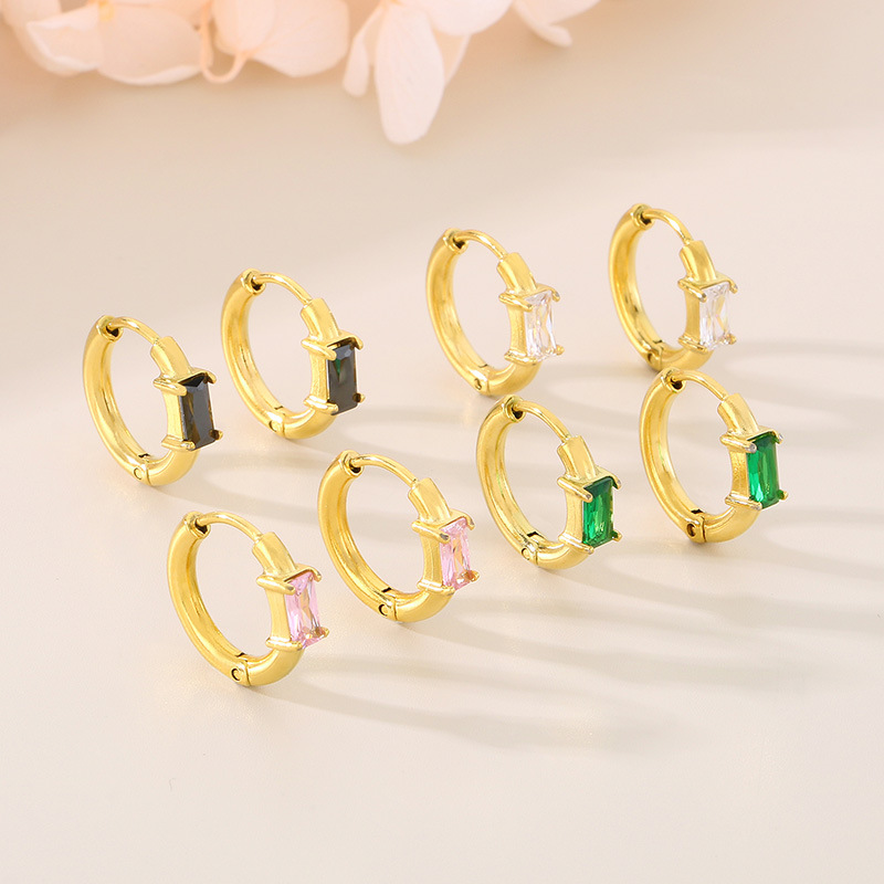 Stainless Steel Huggie Hoop Earring, Square, plated