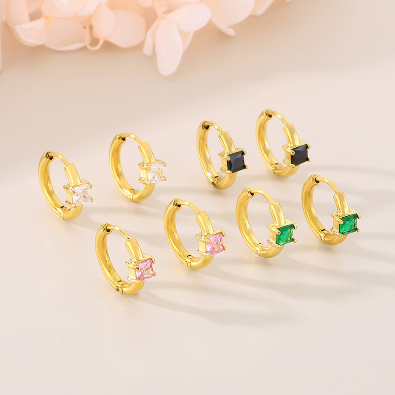 Stainless Steel Huggie Hoop Earring, Square, plated