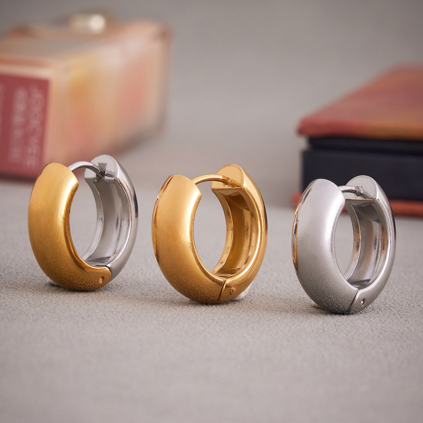 Stainless Steel Huggie Hoop Earring, stainless steel hoop earring, Donut, for man & stardust, golden