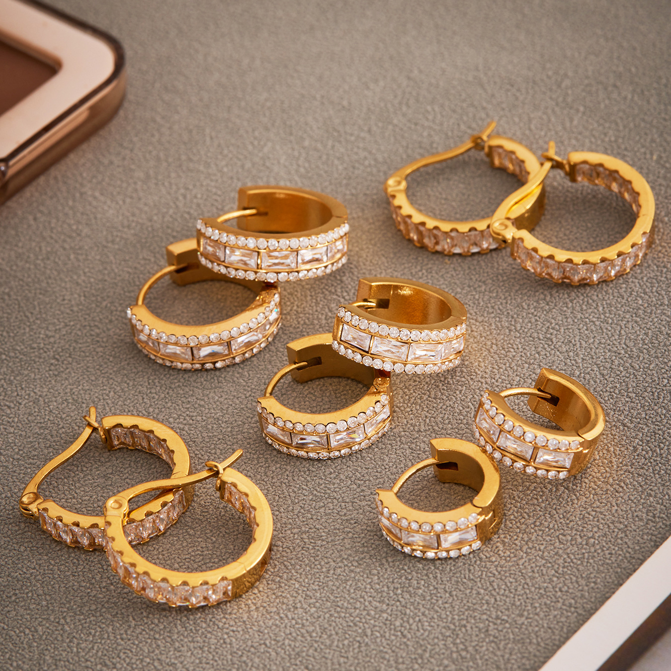 Stainless Steel Huggie Hoop Earring, 304 Stainless Steel, plated, different styles for choice & micro pave cubic zirconia & for woman, more colors for choice, Sold By Pair