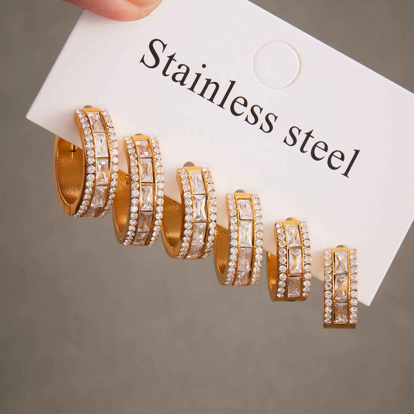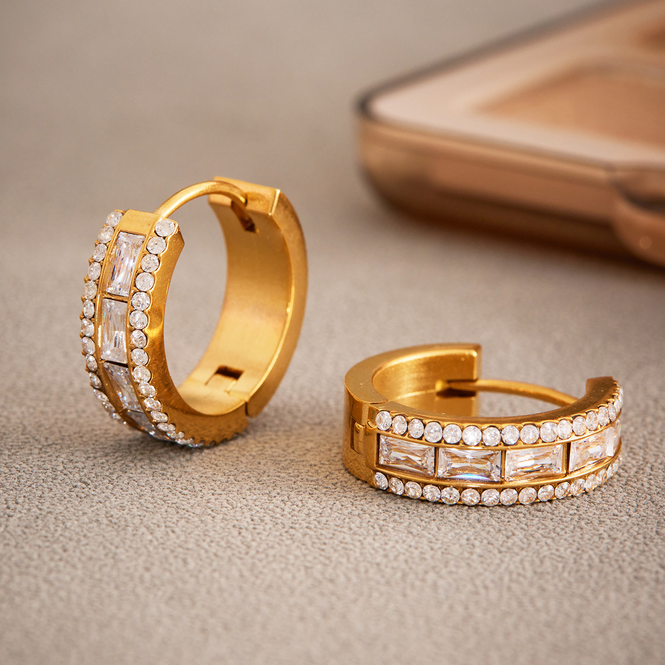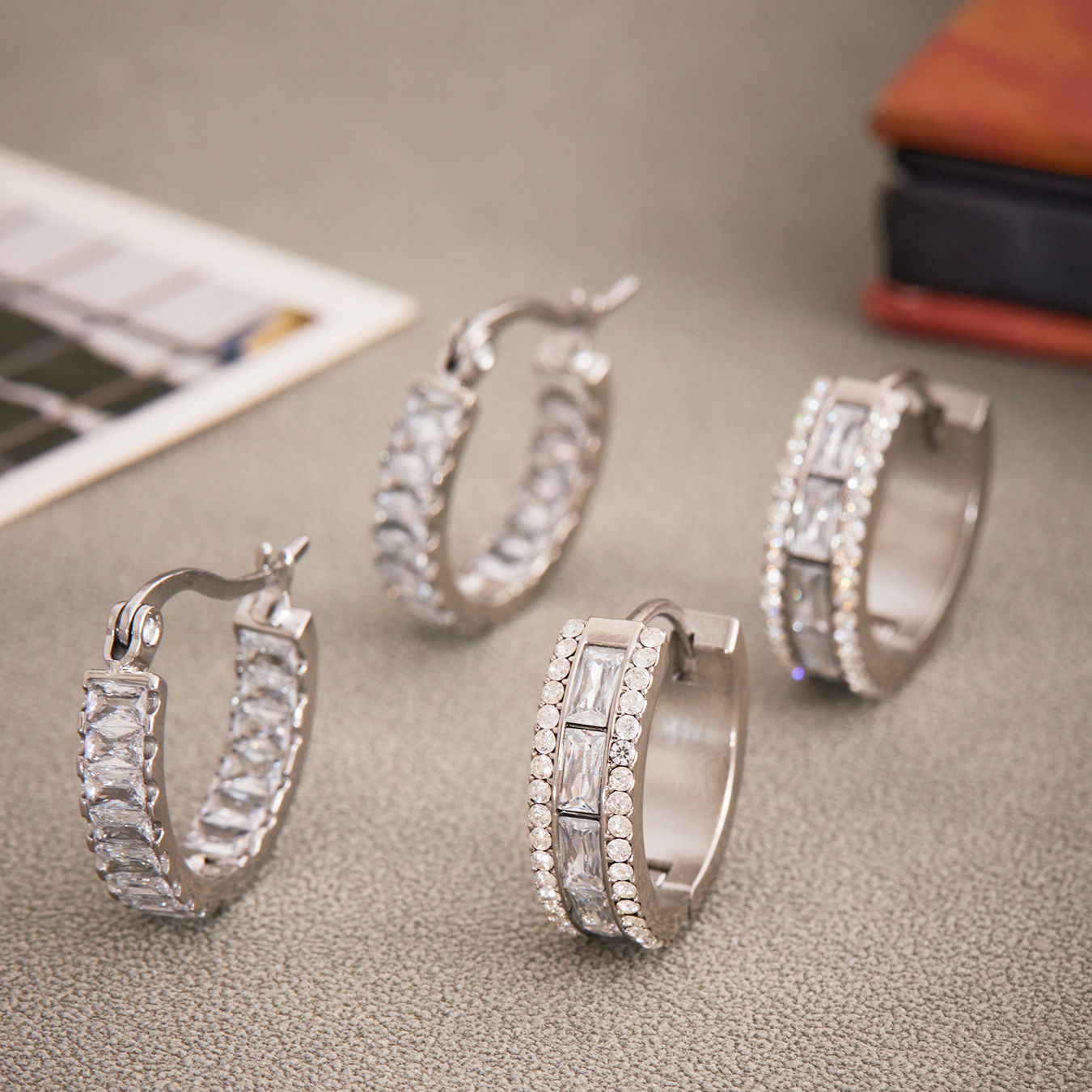 Stainless Steel Huggie Hoop Earring, with Rhinestone Clay Pave