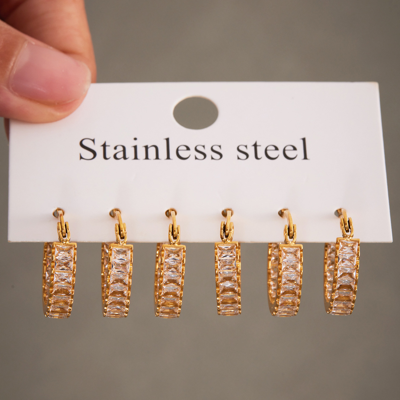 Stainless Steel Huggie Hoop Earring, Square, plated