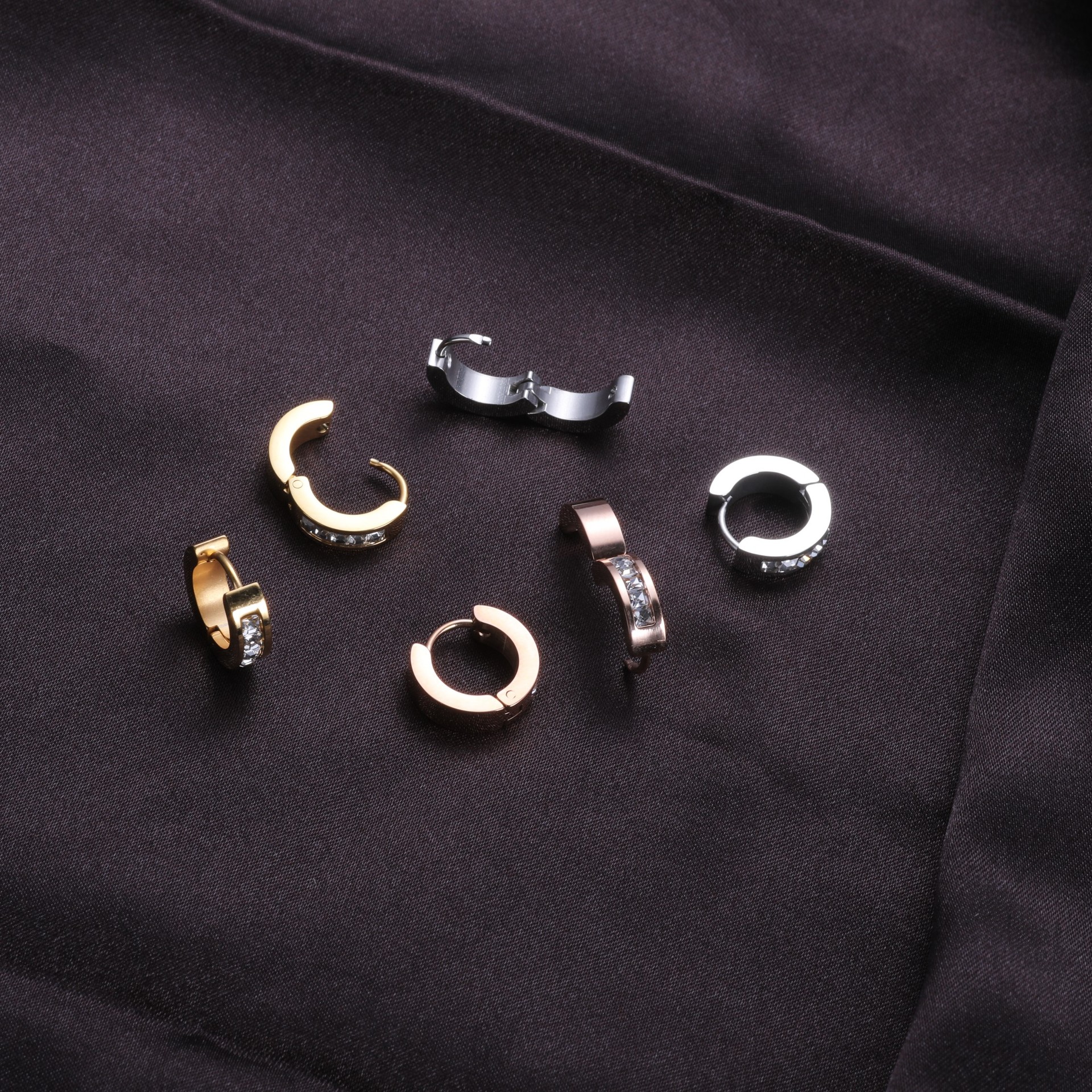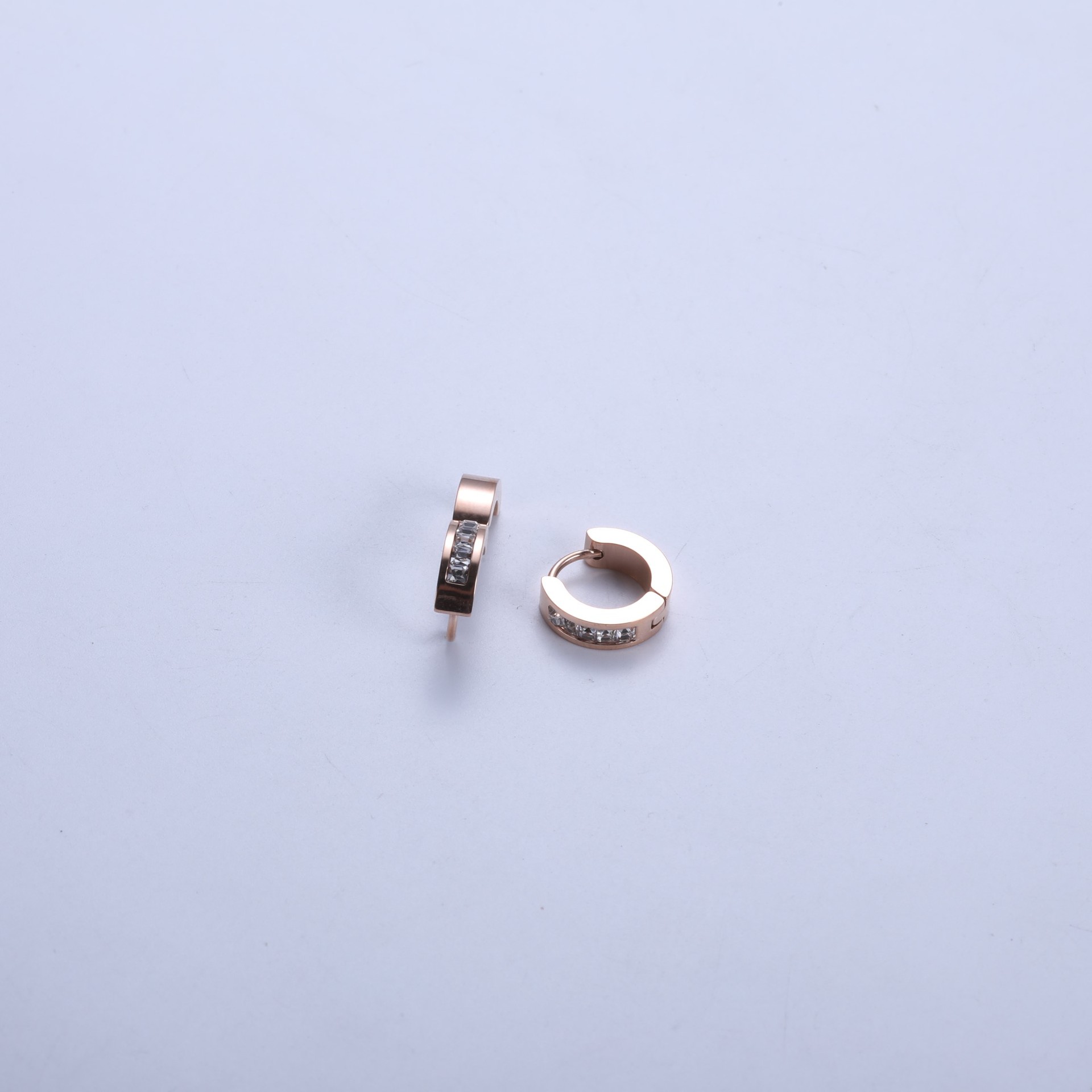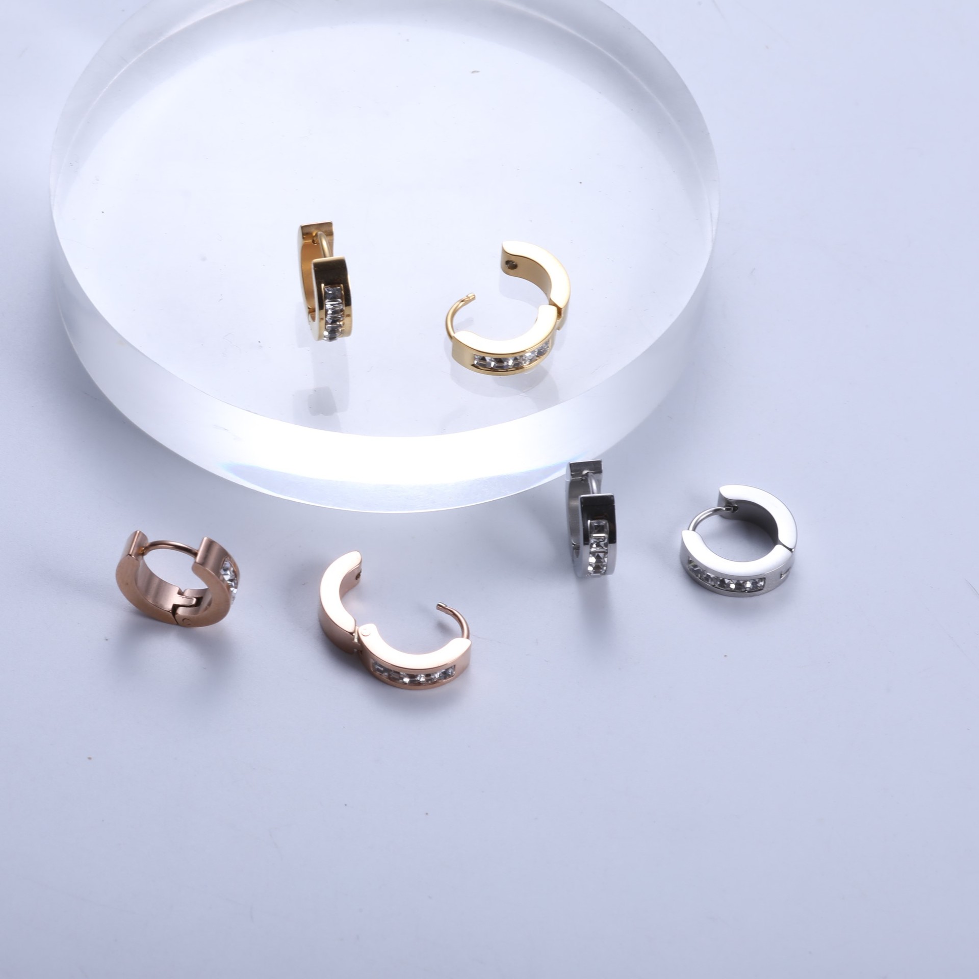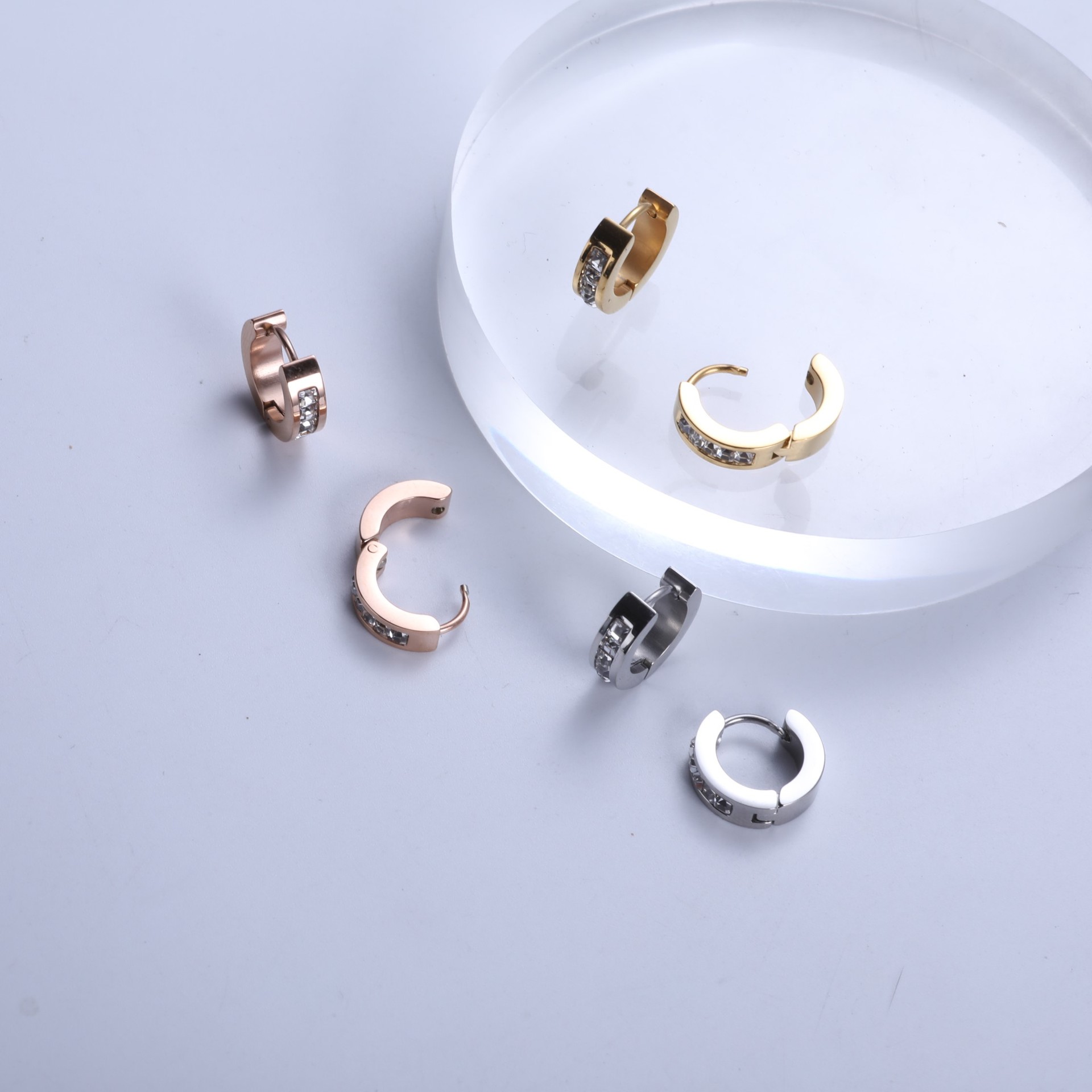 Stainless Steel Huggie Hoop Earring, with Rhinestone Clay Pave & for woman, original color