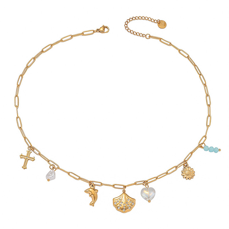 Stainless Steel Jewelry Necklace, 304 Stainless Steel, with Plastic Pearl, plated, fashion jewelry & for woman & with rhinestone, golden, Sold By PC