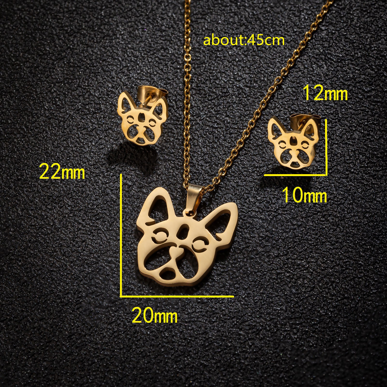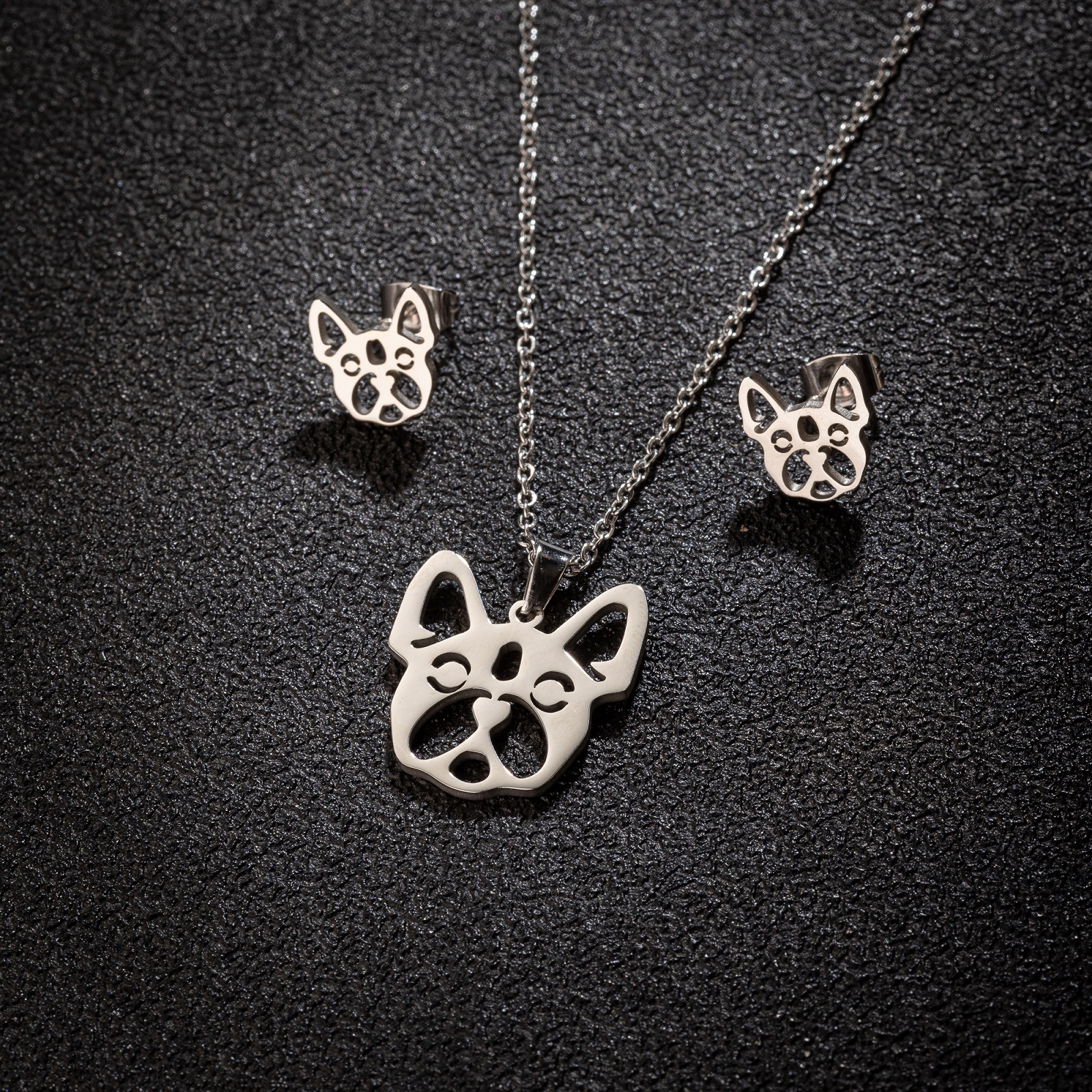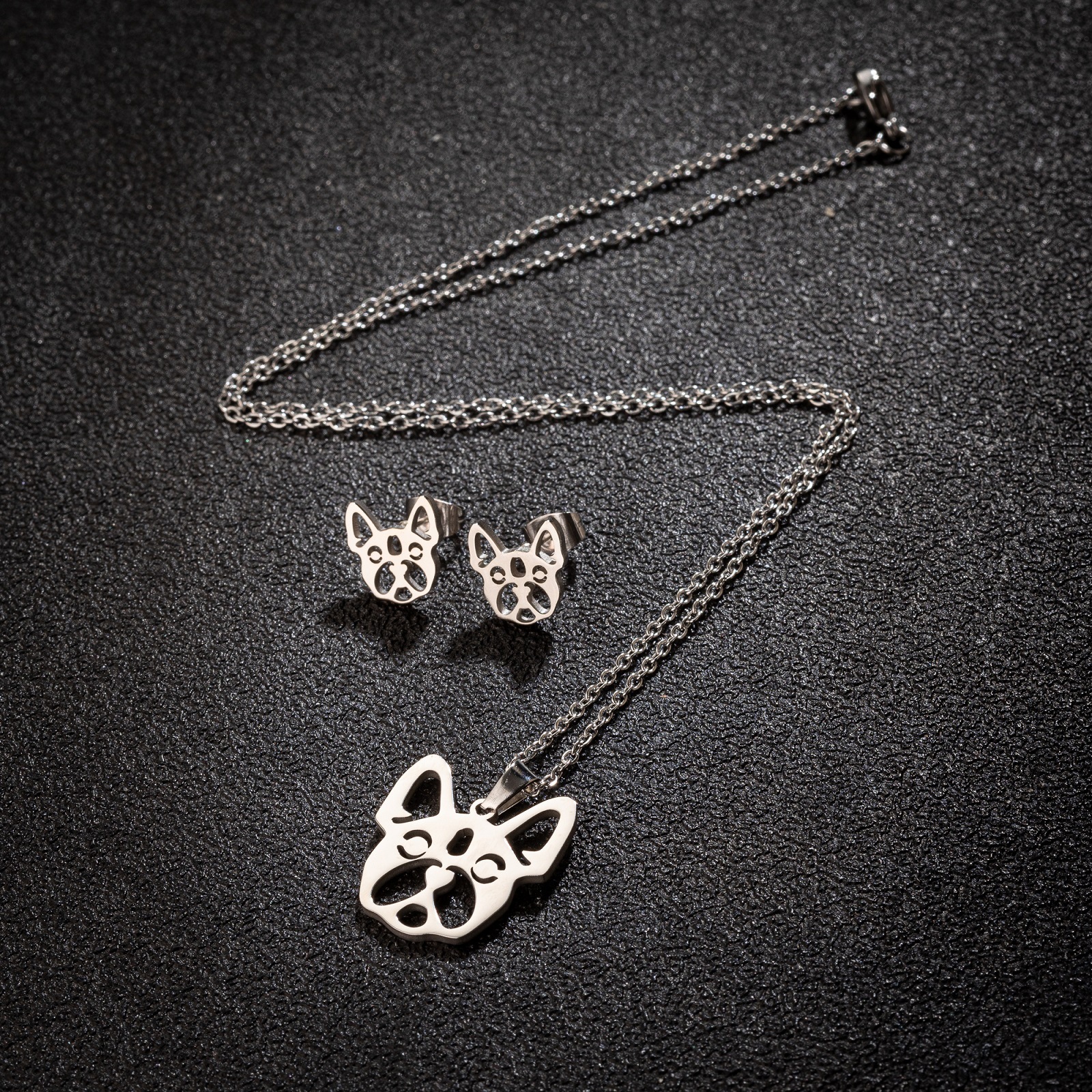 Stainless Steel Jewelry Necklace, 304 Stainless Steel, Stud Earring & necklace, Dog, Vacuum Ion Plating, fashion jewelry & for woman, more colors for choice, Sold By Set