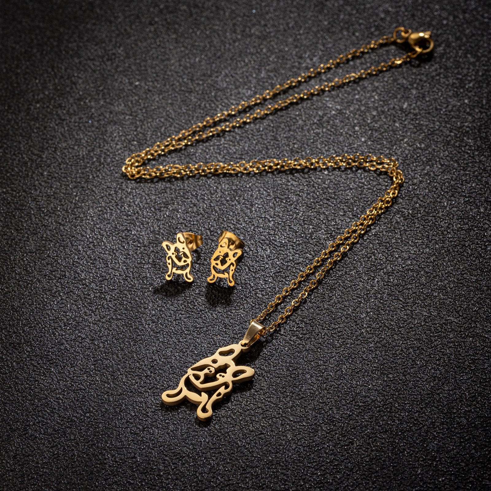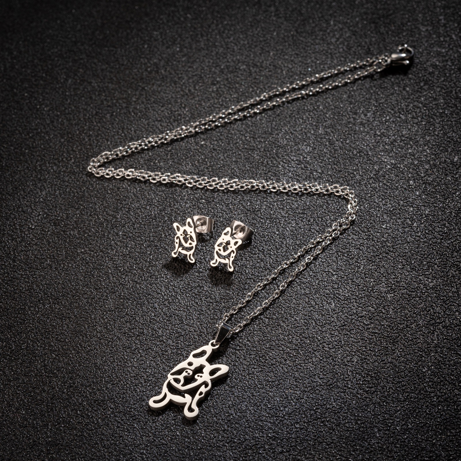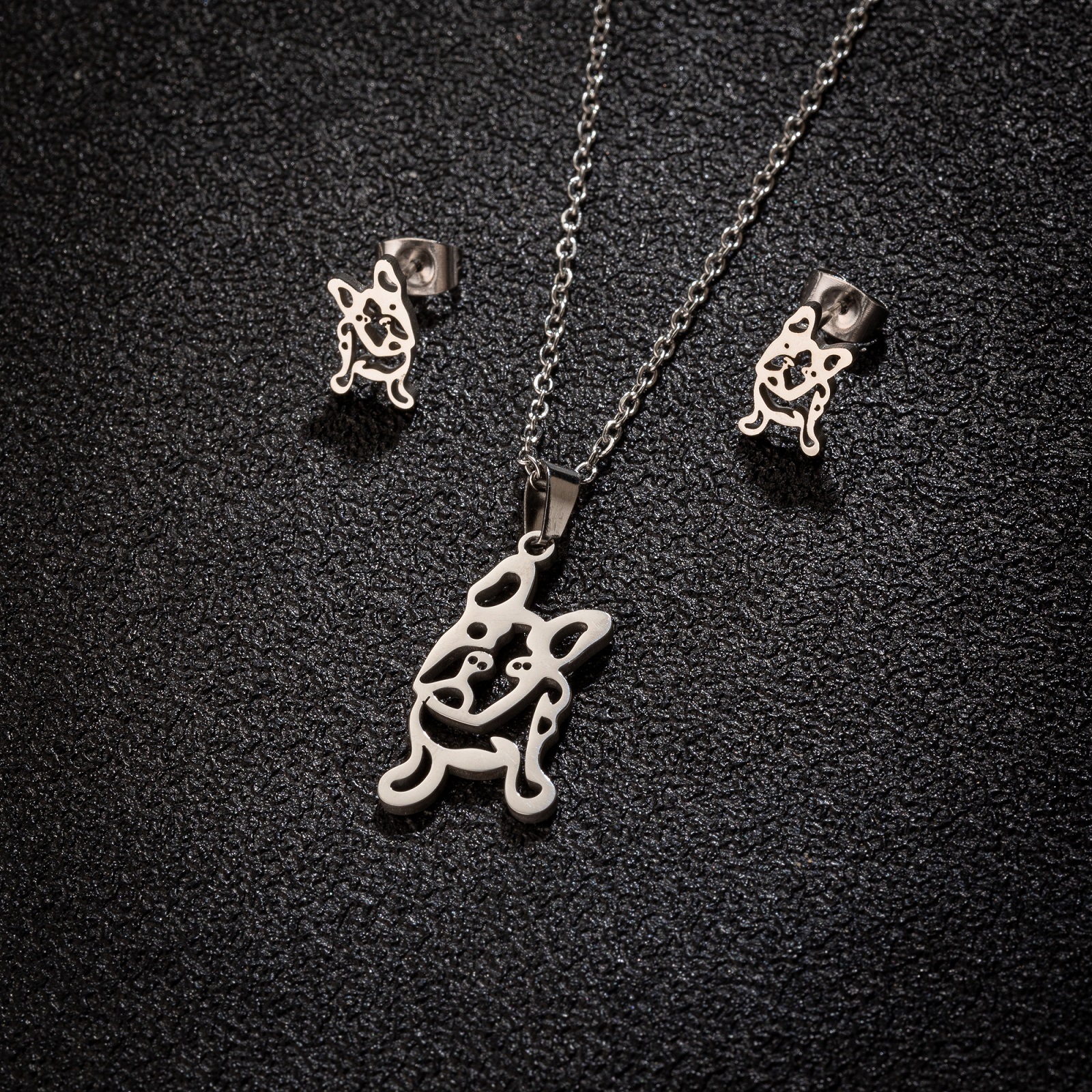 Stainless Steel Jewelry Necklace, 304 Stainless Steel, Stud Earring & necklace, Dog, Vacuum Ion Plating, fashion jewelry & for woman, more colors for choice, Sold By Set