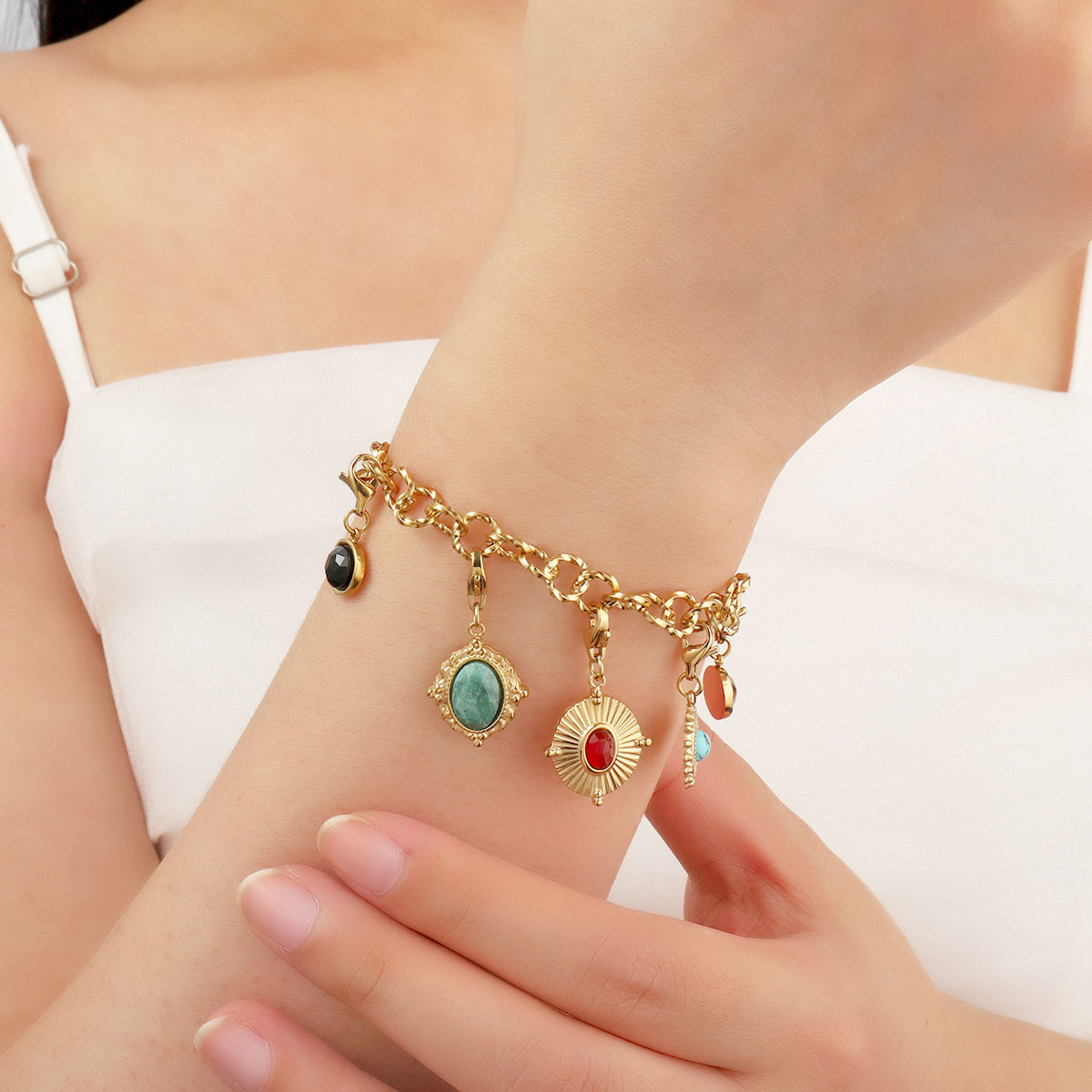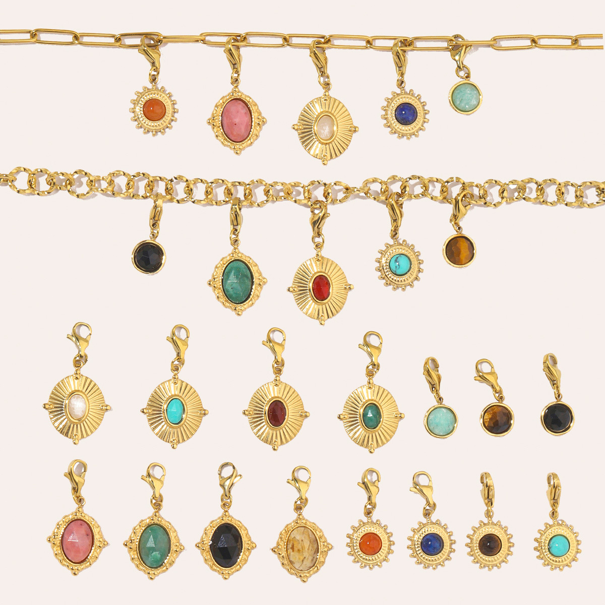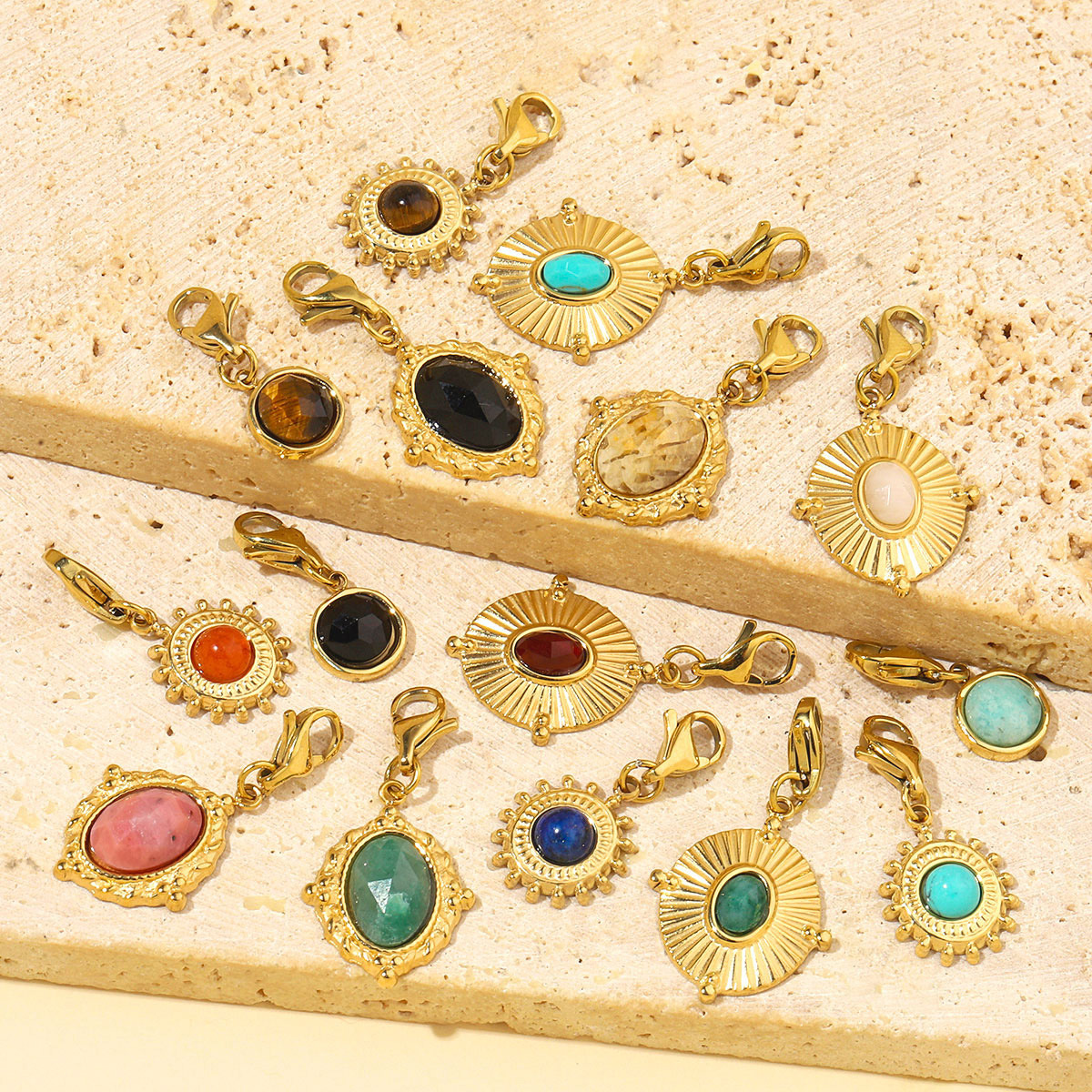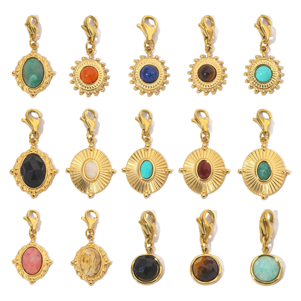 Stainless Steel Key Chain, 304 Stainless Steel, with Gemstone, Vacuum Ion Plating, Different Shape for Choice & DIY, more colors for choice, 6PCs/Bag, Sold By Bag