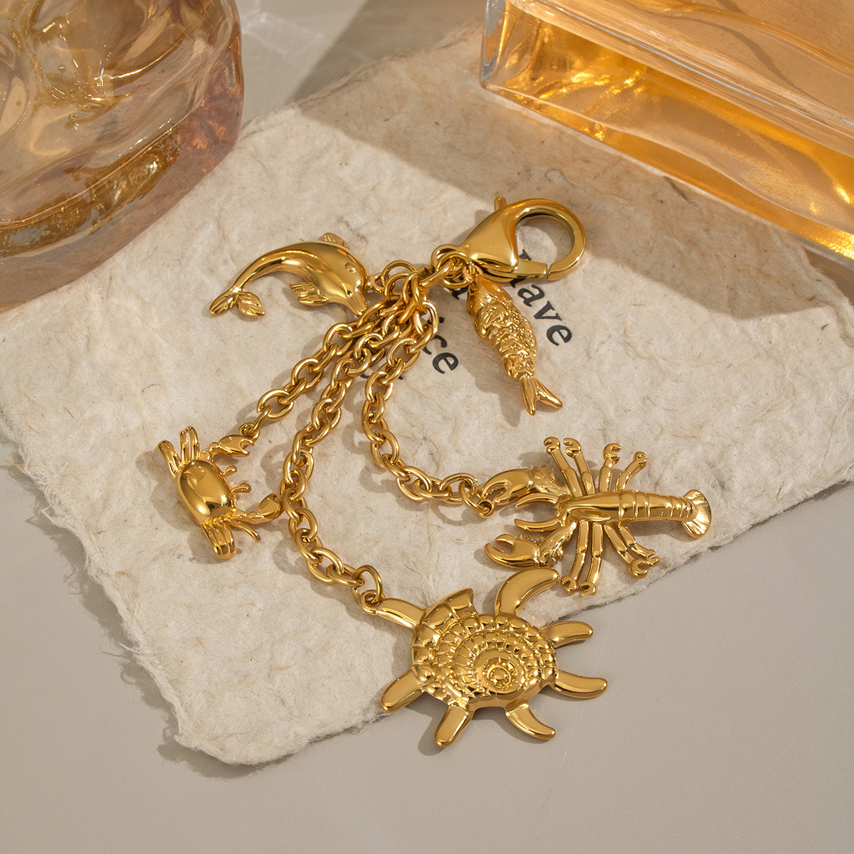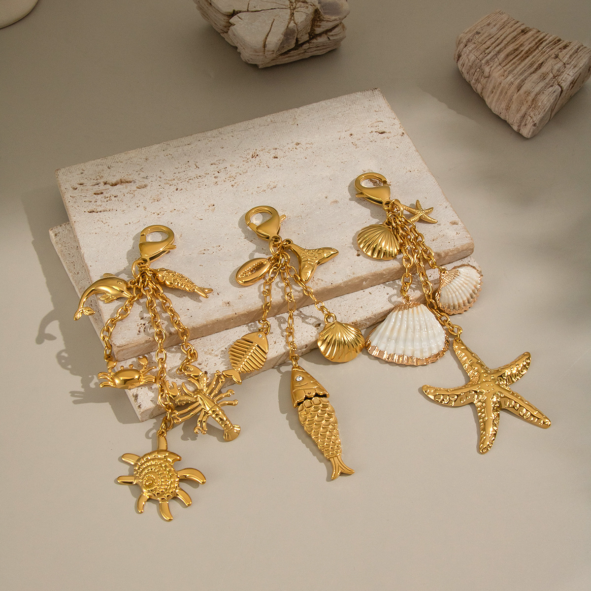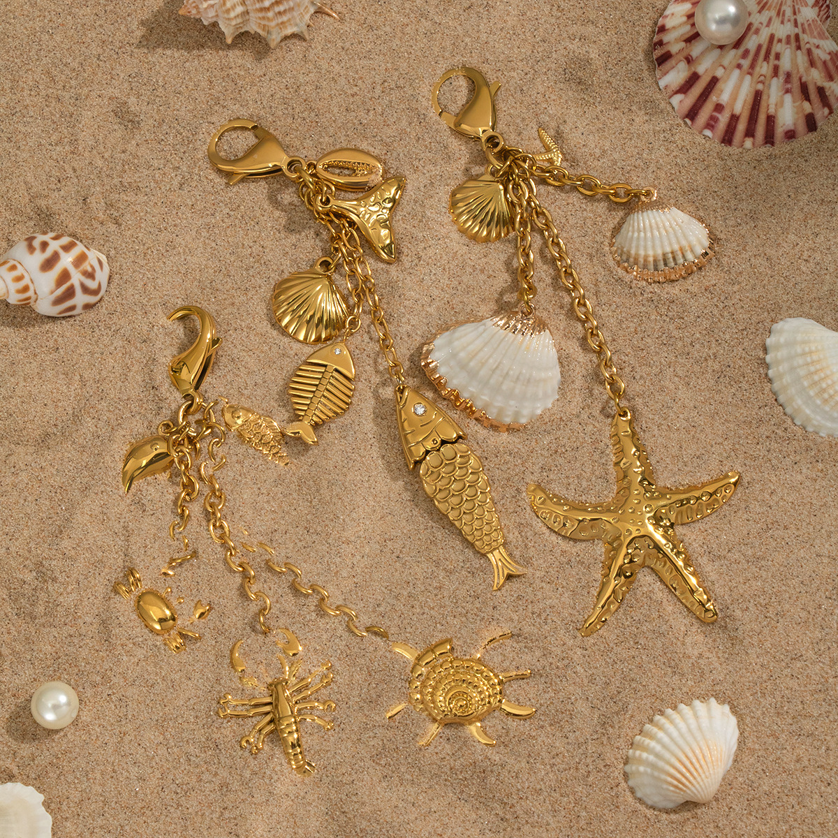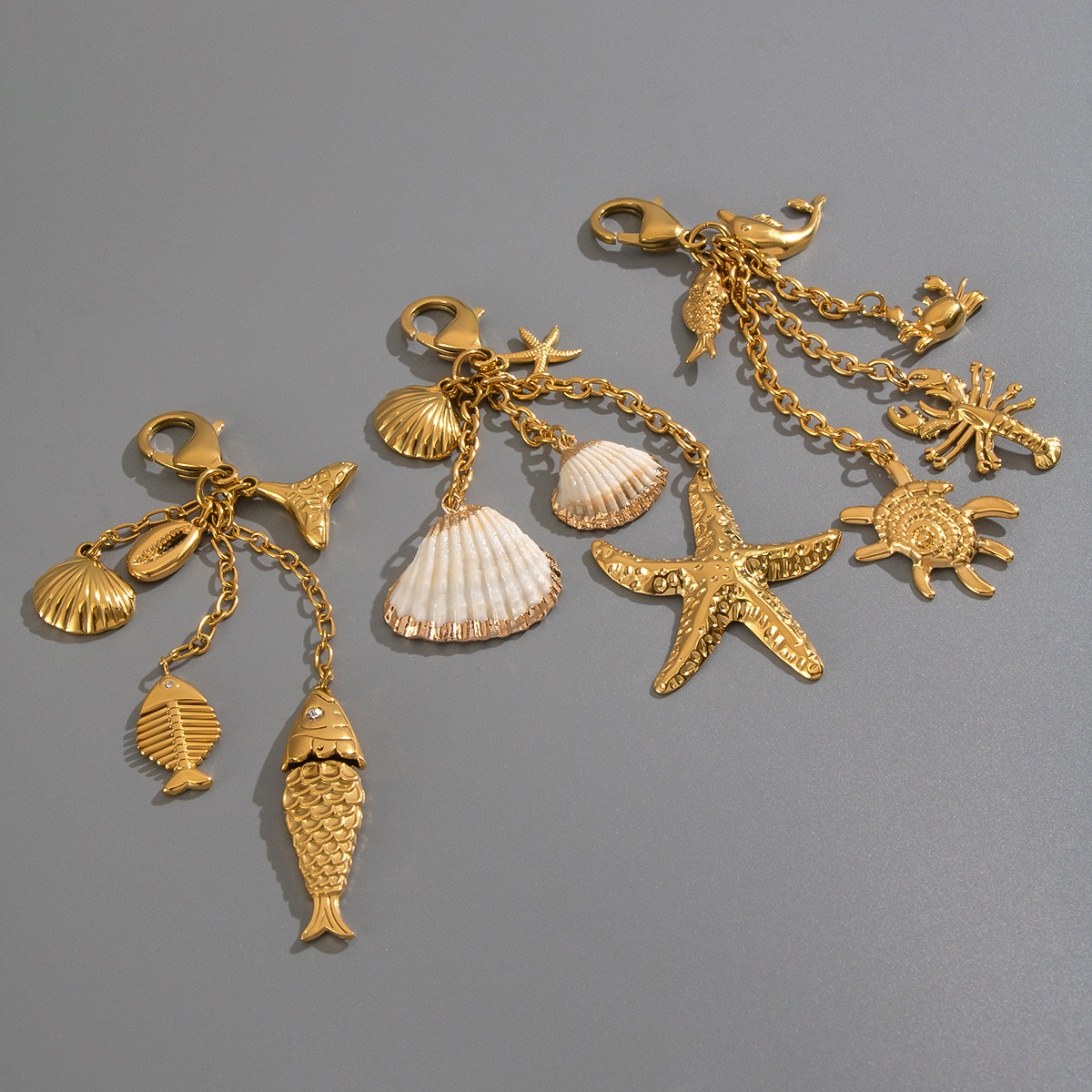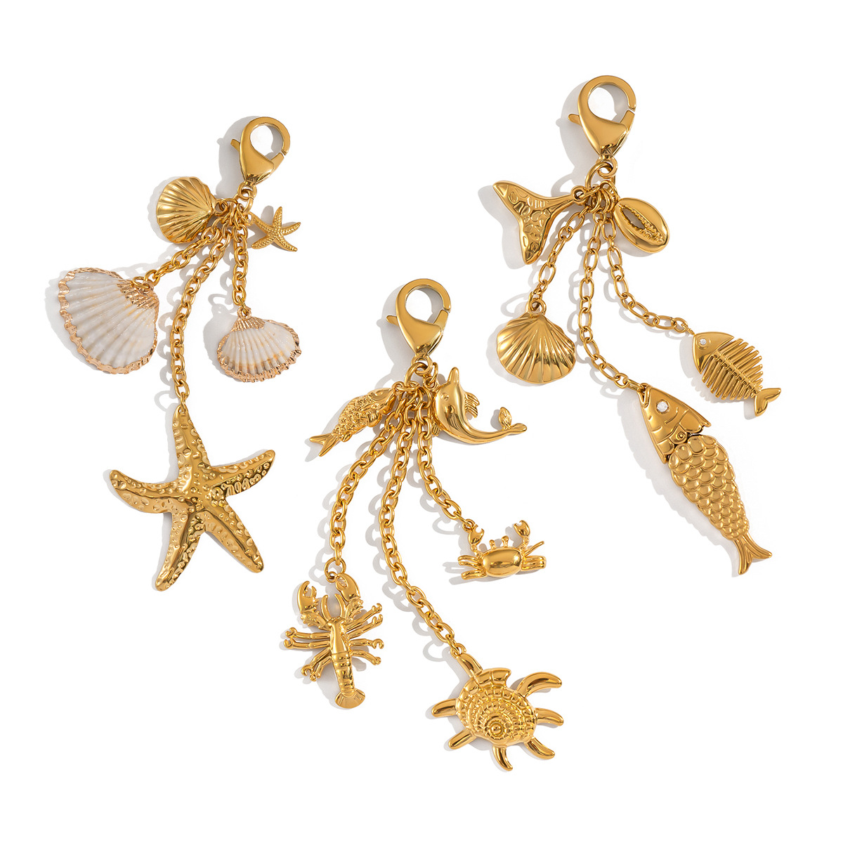 Stainless Steel Key Chain, 304 Stainless Steel, with Trumpet Shell, plated, DIY & different styles for choice, golden, Sold By PC