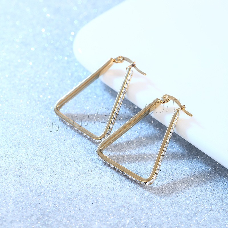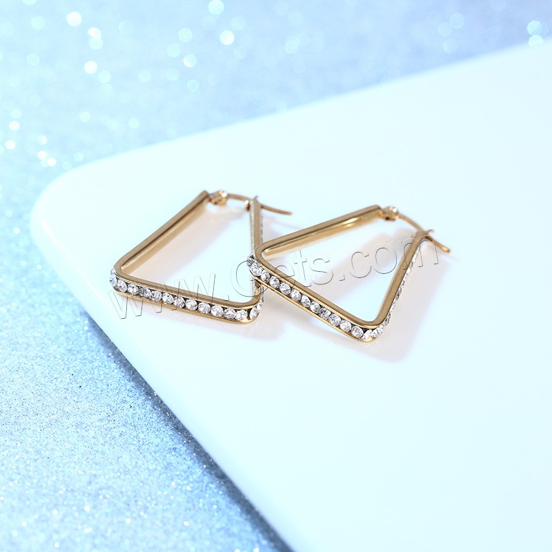 Stainless Steel Leverback Earring, 304 Stainless Steel, different size for choice & for woman & with rhinestone, golden, Sold By Pair
