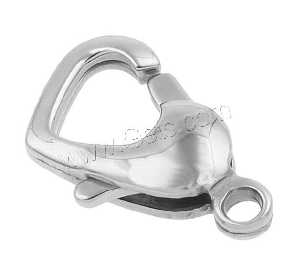 Stainless Steel Lobster Claw Clasp, Heart, original color, 11x14mm, Hole:Approx 2mm, Sold By PC