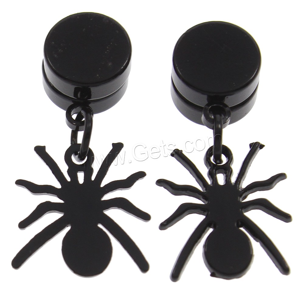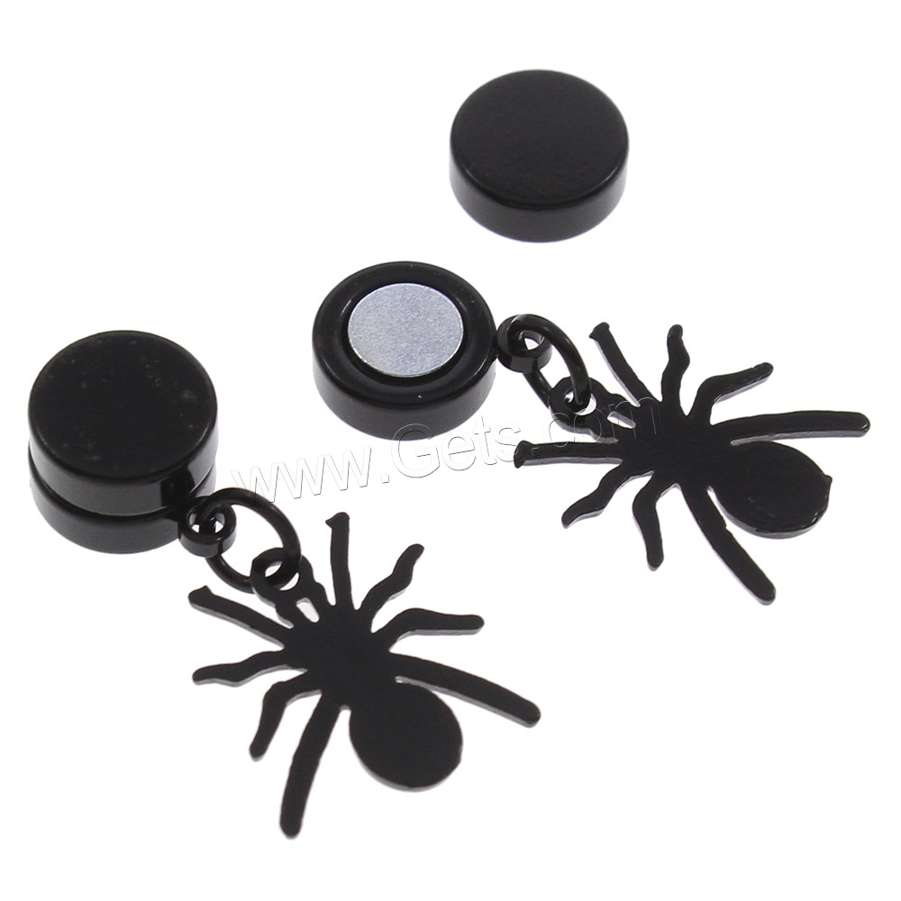 Stainless Steel Magnetic Drop Earring, with Magnetic Hematite, Spider, black ionic, 13x23x5mm, 12PCs/Lot, Sold By Lot