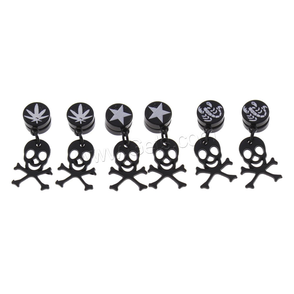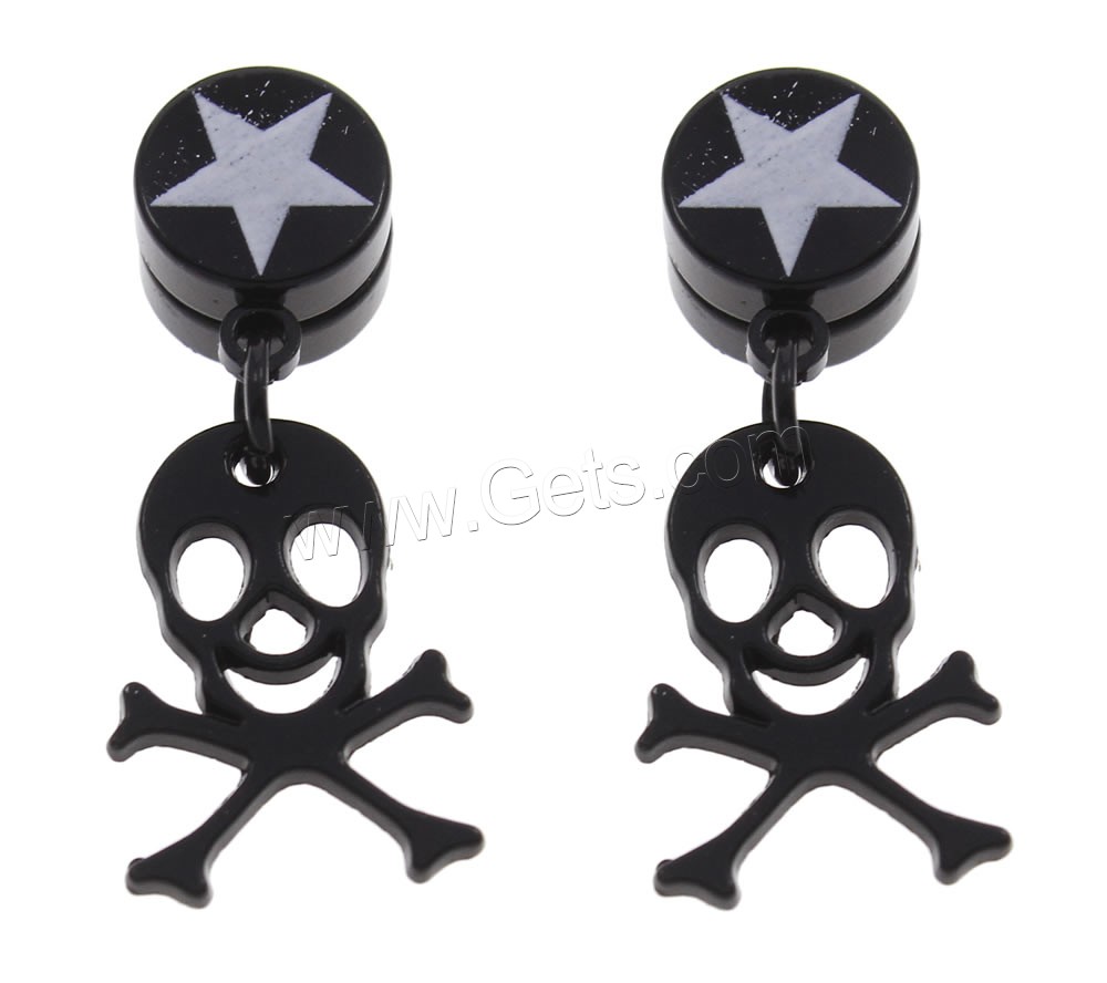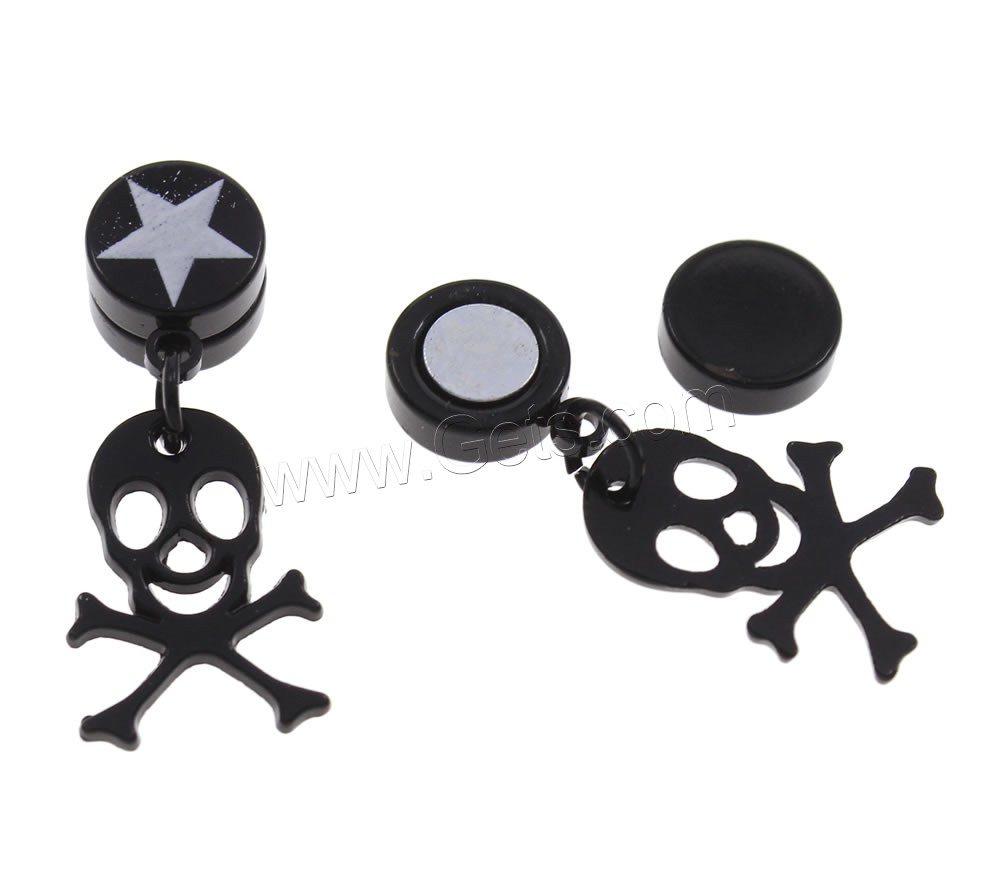 Stainless Steel Magnetic Drop Earring, with Magnetic Hematite, Skull, black ionic, mixed pattern & with painted, 11x28x5mm, 12PCs/Lot, Sold By Lot