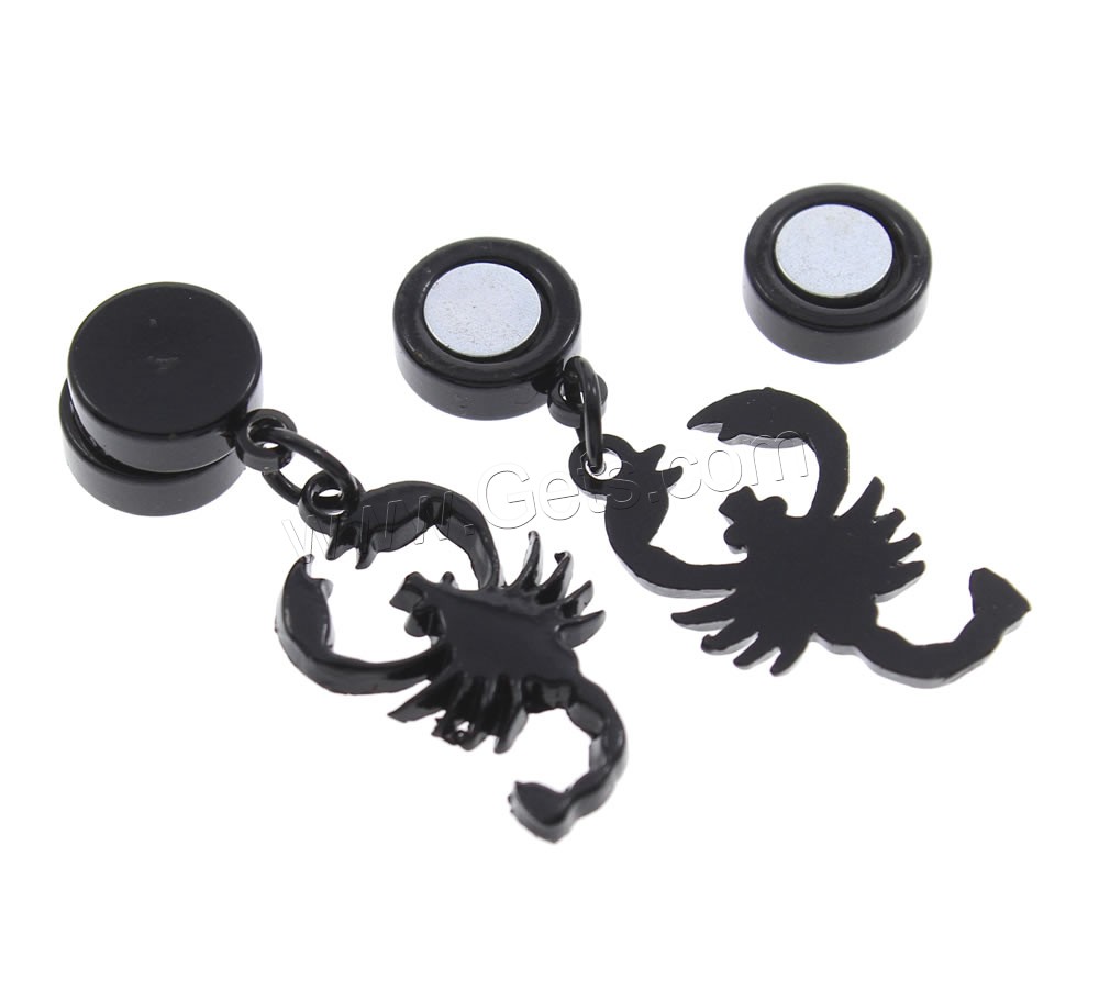 Stainless Steel Magnetic Drop Earring, with Magnetic Hematite, Scorpion, black ionic, 11x29x6mm, 12PCs/Lot, Sold By Lot