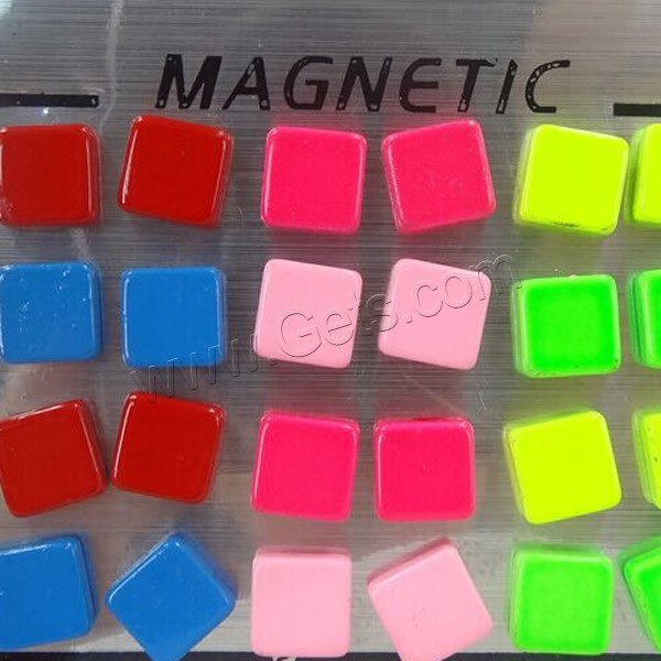 Stainless Steel Magnetic Stud Earring, with Magnetic Hematite, Square, painted, mixed colors, 10mm, 12Pairs/Bag, Sold By Bag
