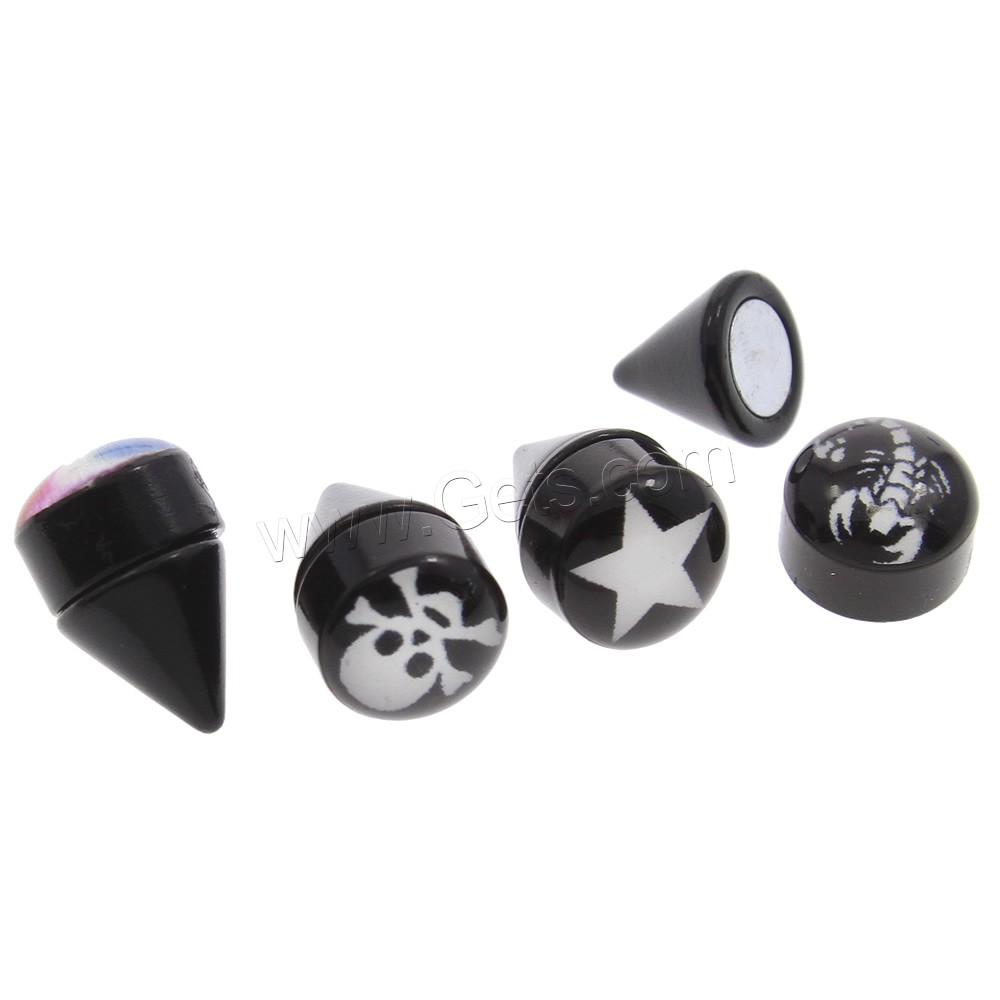 Stainless Steel Magnetic Stud Earring, with Magnetic Hematite, black ionic, mixed pattern & enamel & decal, 8x13mm, 12PCs/Lot, Sold By Lot