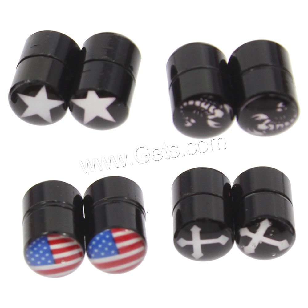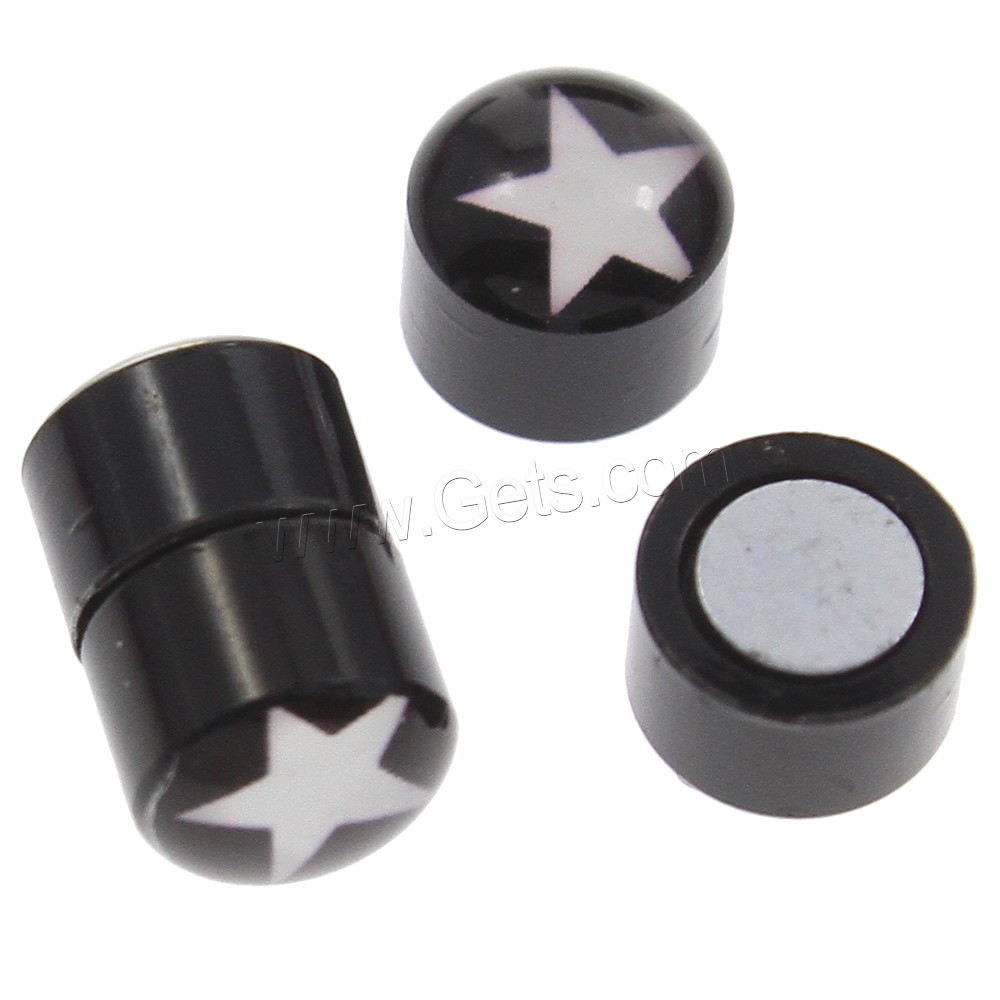 Stainless Steel Magnetic Stud Earring, with Magnetic Hematite, Flat Round, black ionic, mixed pattern & enamel & decal, 6x10mm, 12Bags/Lot, 2PCs/Bag, Sold By Lot