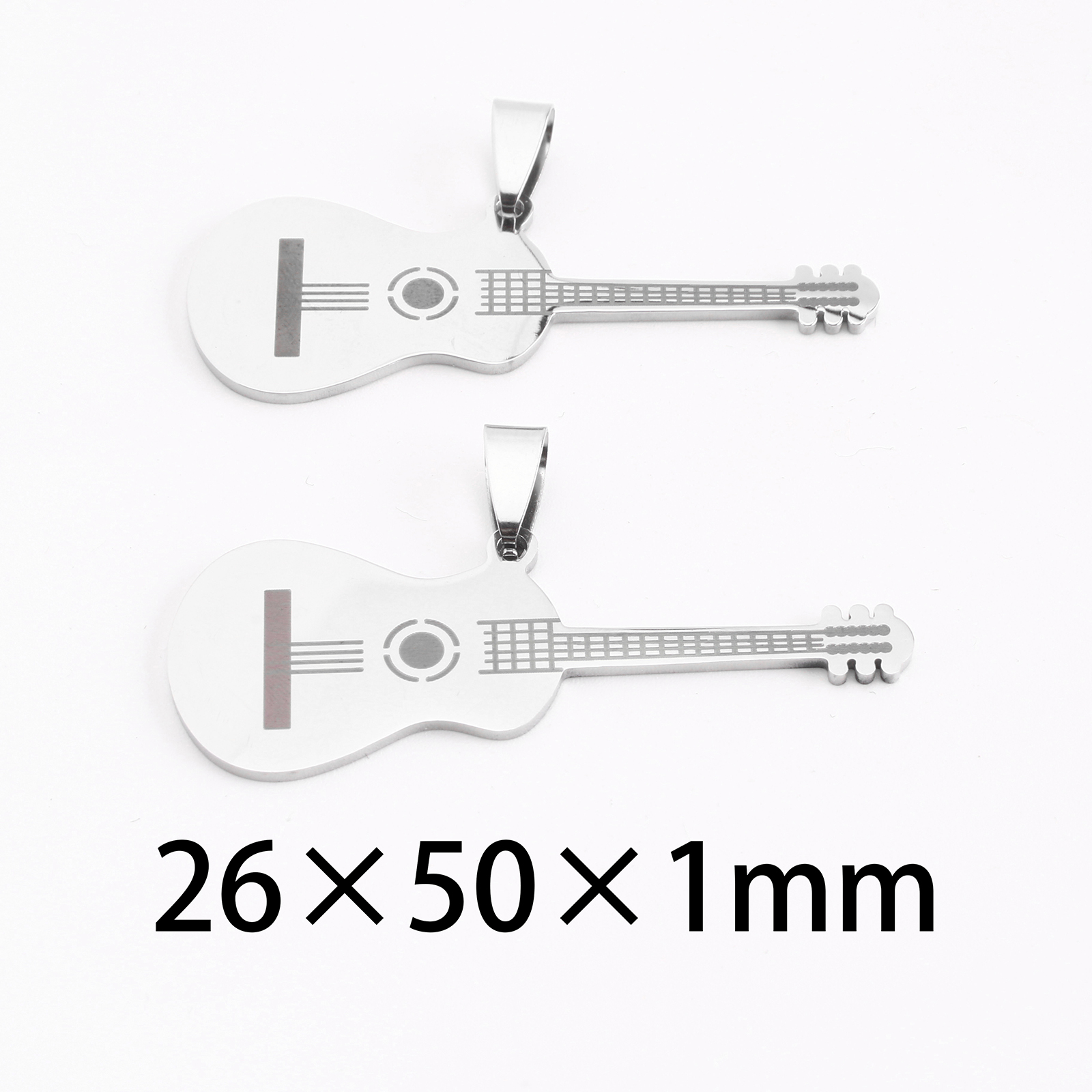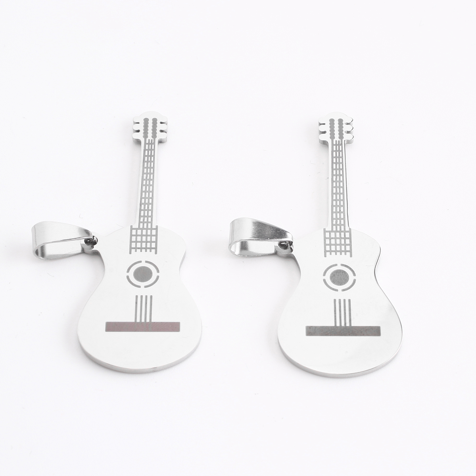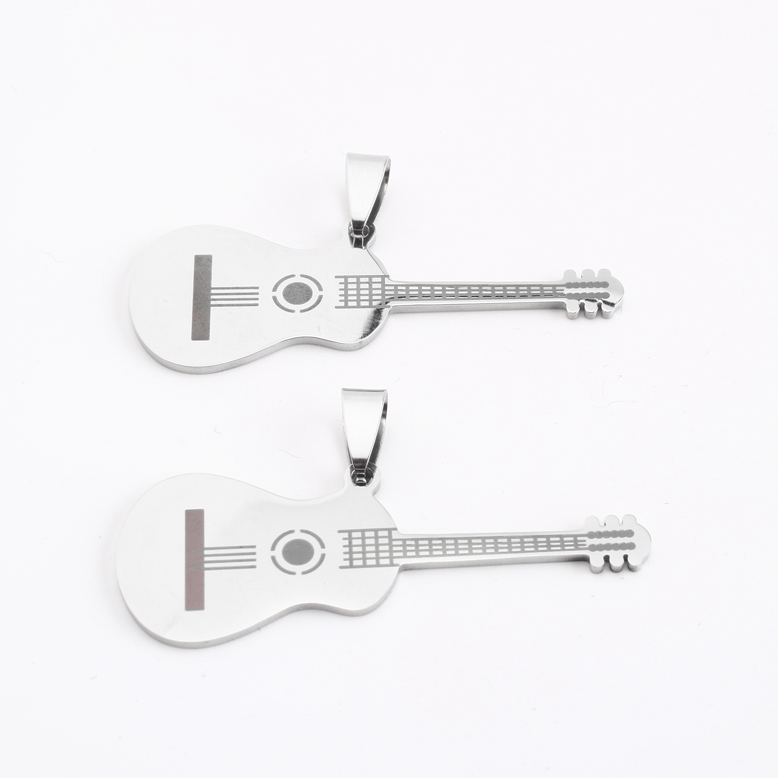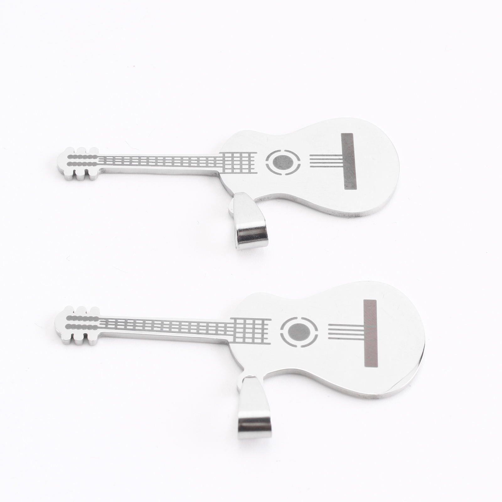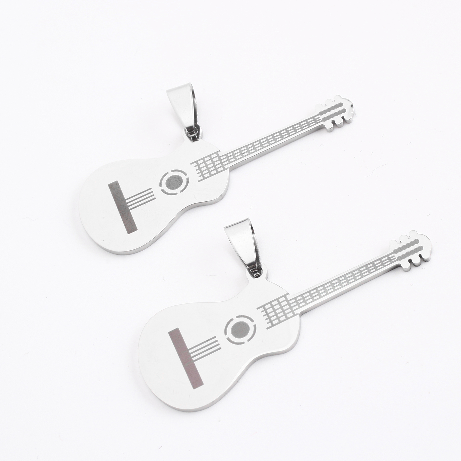 Stainless Steel Musical Instrument and Note Pendant, 304 Stainless Steel, Guitar, DIY, original color, 26x50x1mm, Sold By PC