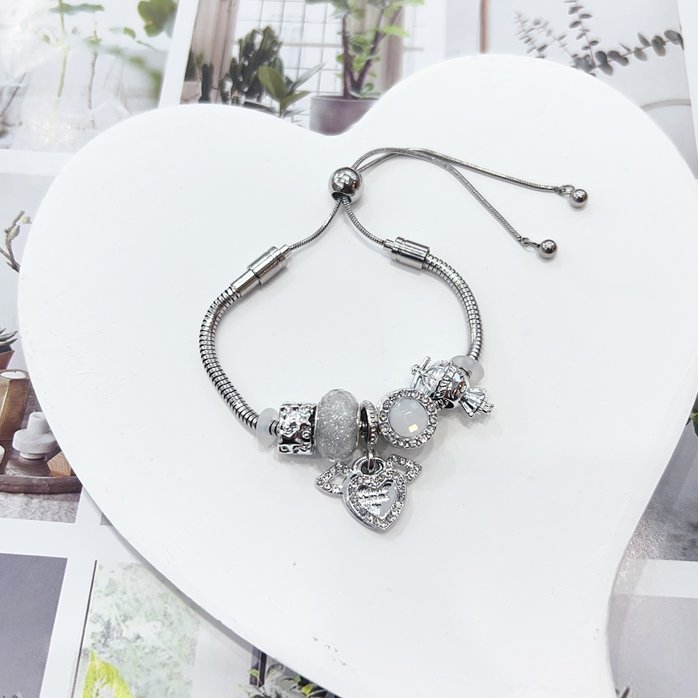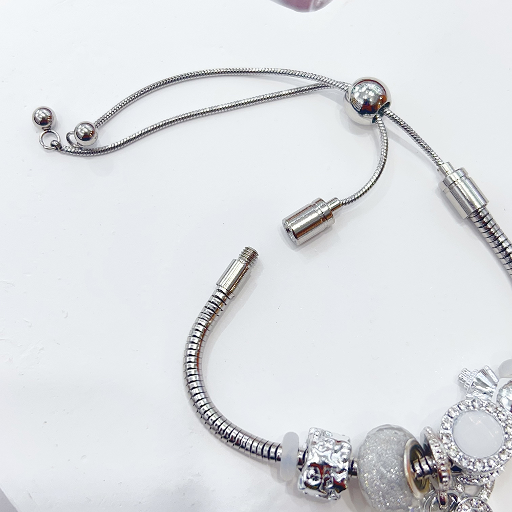 Stainless Steel  European Bracelets, Zinc Alloy, with 304 Stainless Steel Chain & Resin, Adjustable & fashion jewelry & for woman, platinum color, Length:Approx 16-26 cm, Sold By PC