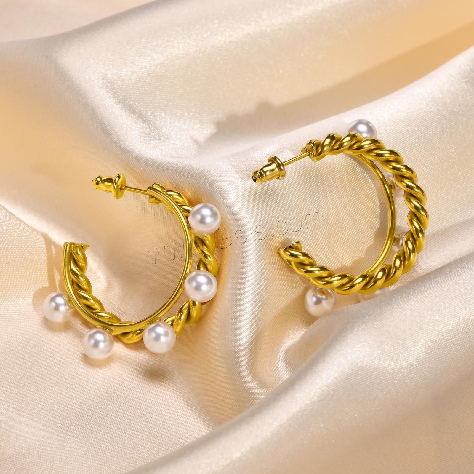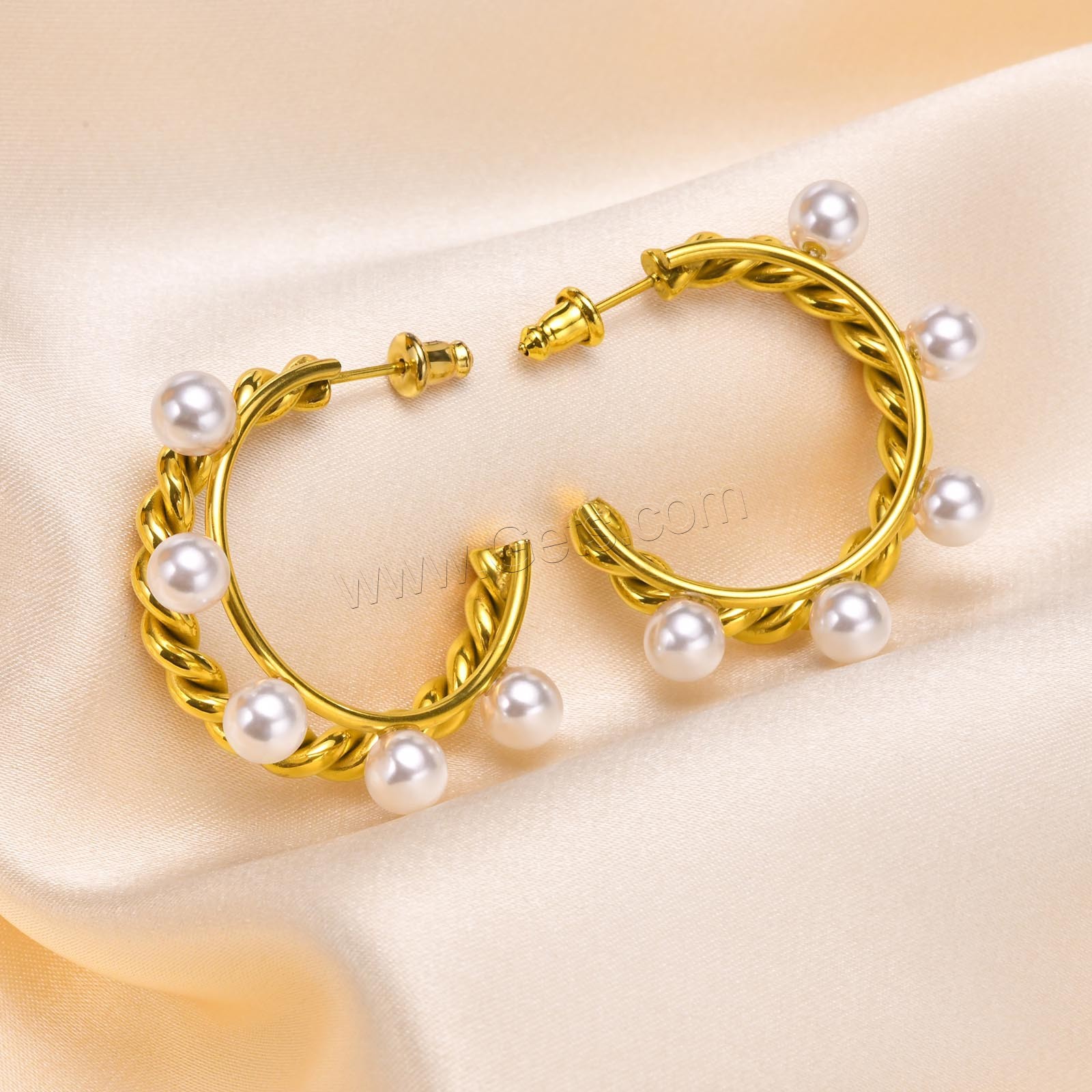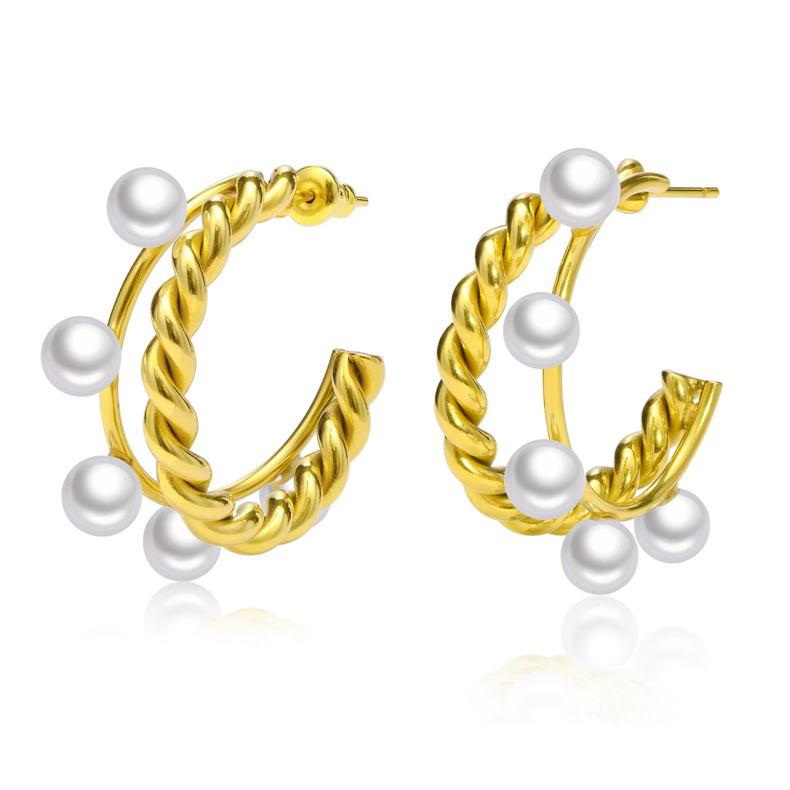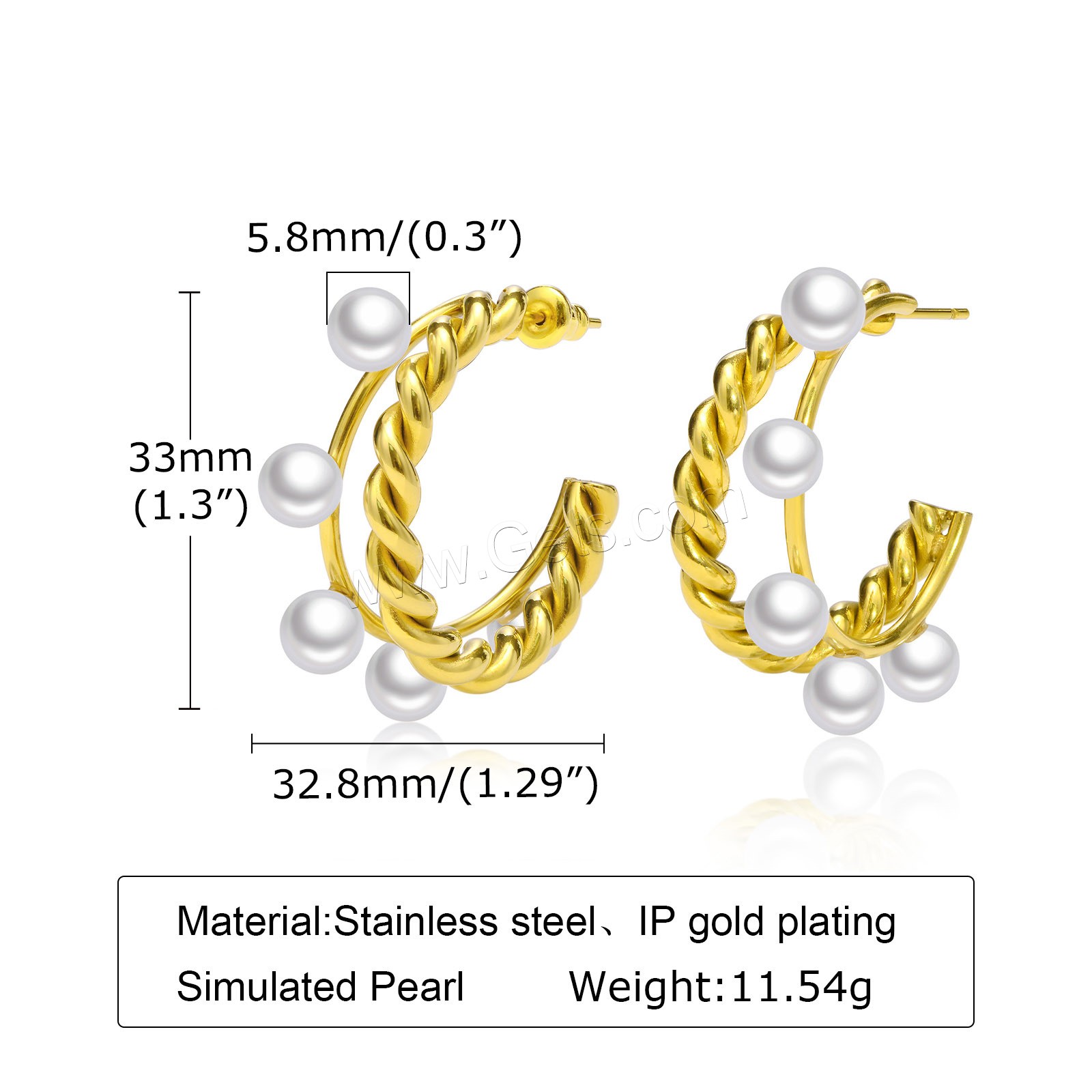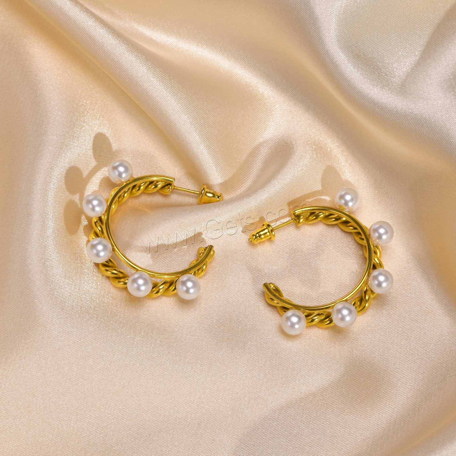 Stainless Steel Pearl Stud Earring, 304 Stainless Steel, with Plastic Pearl, fashion jewelry & for woman, golden, 32.8*33mm,5.8mm, Sold By Pair