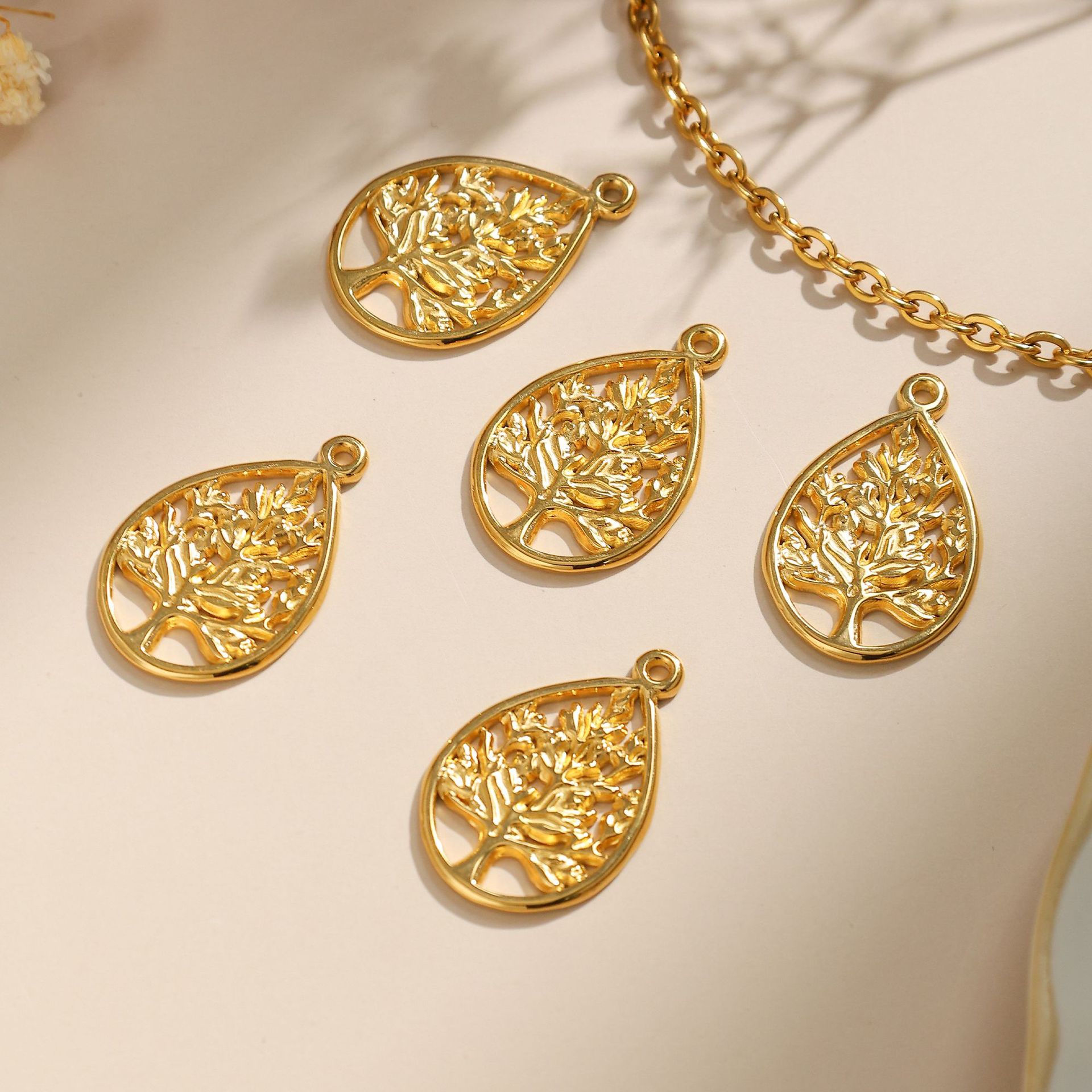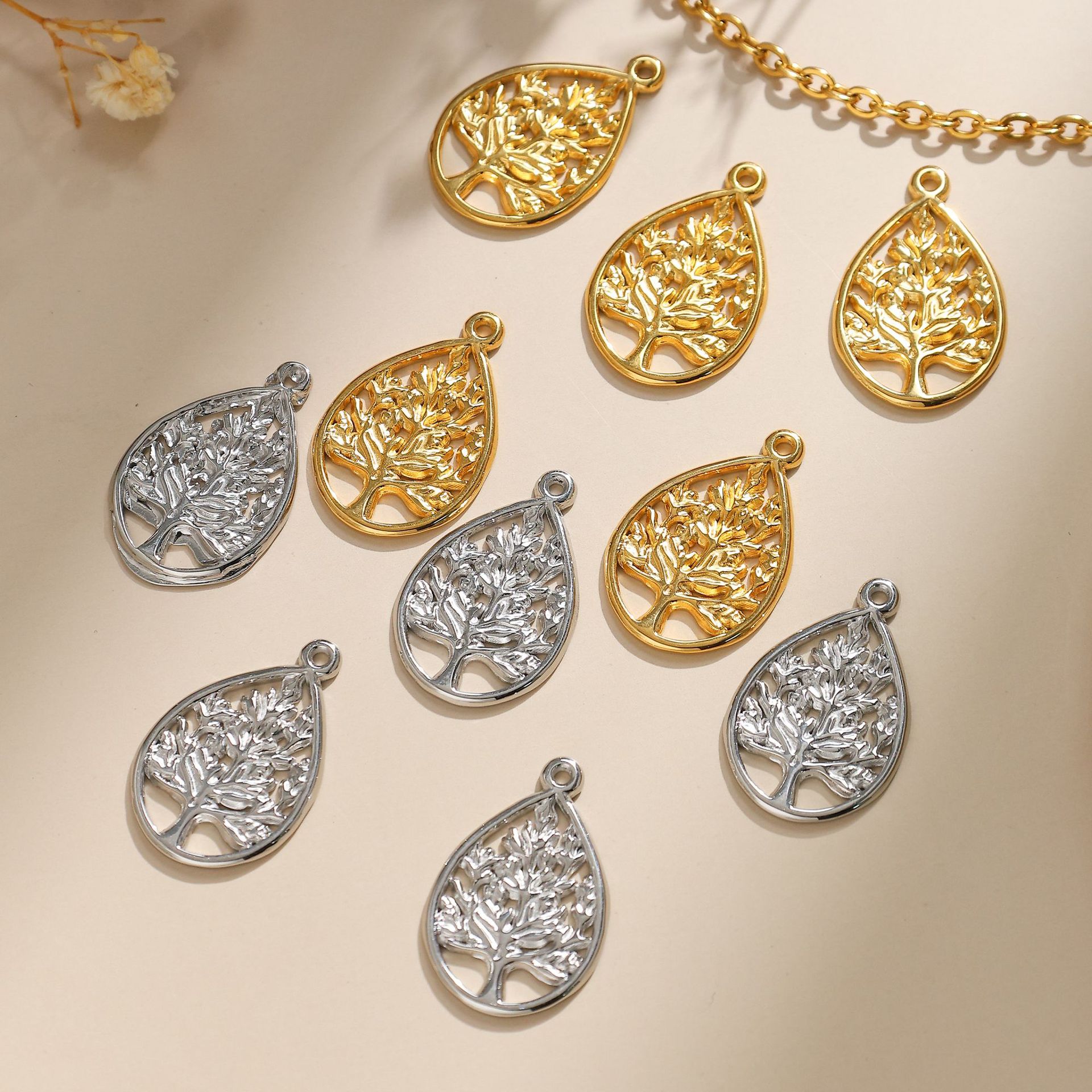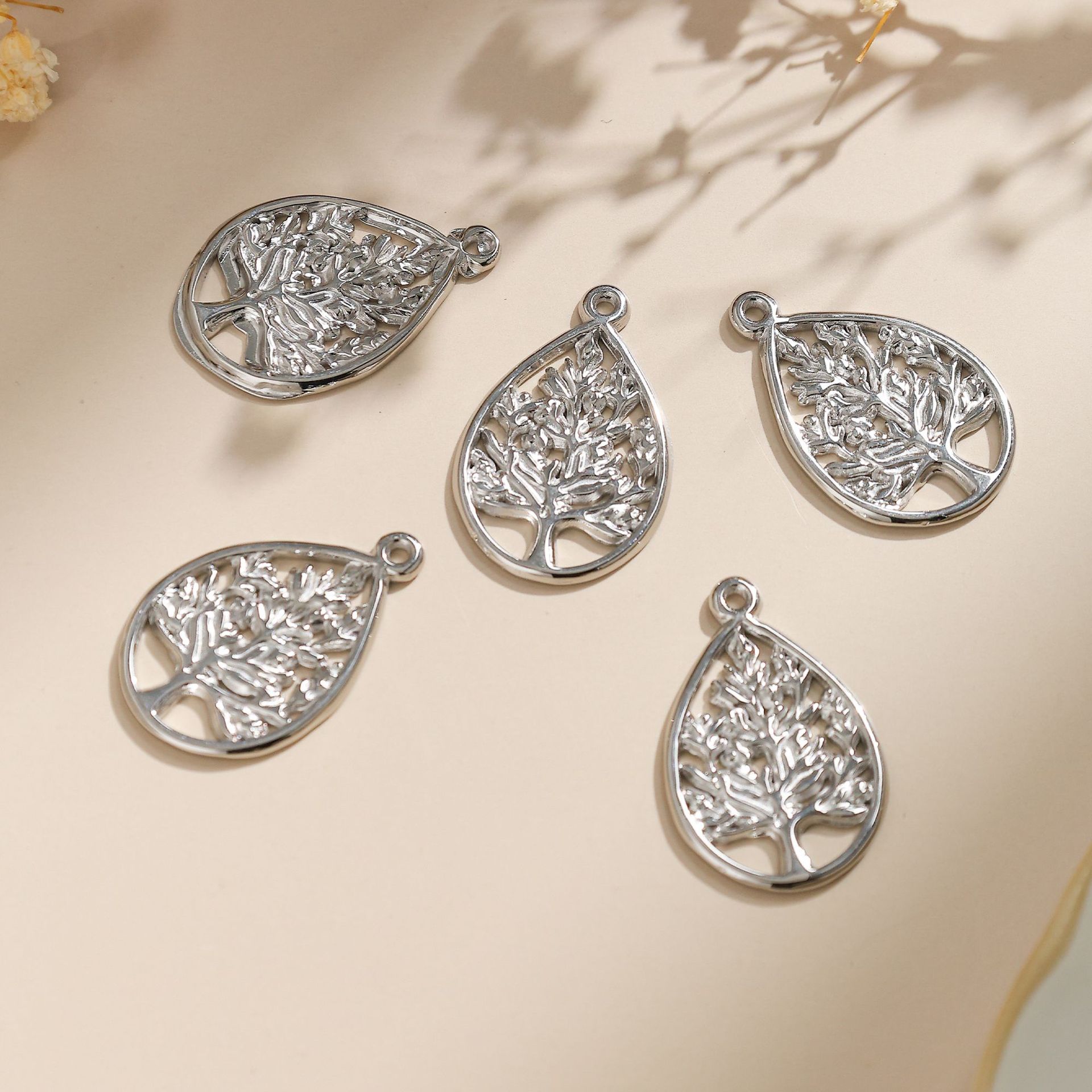 Stainless Steel Pendants, Round, tree of life design, original color