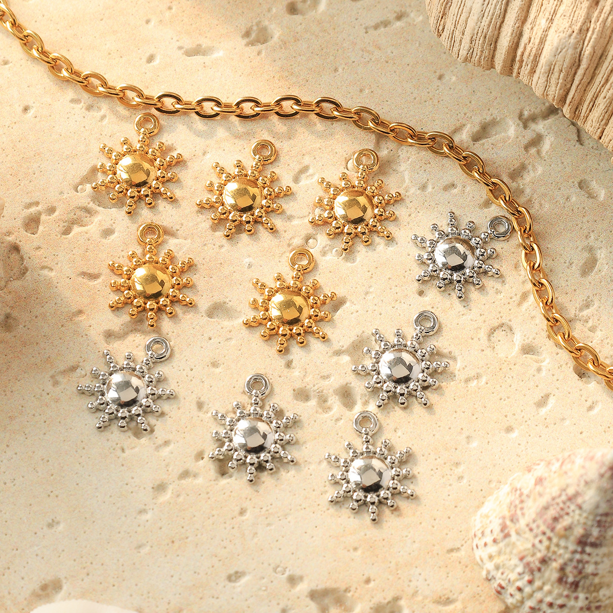 Stainless Steel Pendants, 304 Stainless Steel, Sun, Vacuum Ion Plating, DIY, more colors for choice, 10x15mm, 10PCs/Bag, Sold By Bag