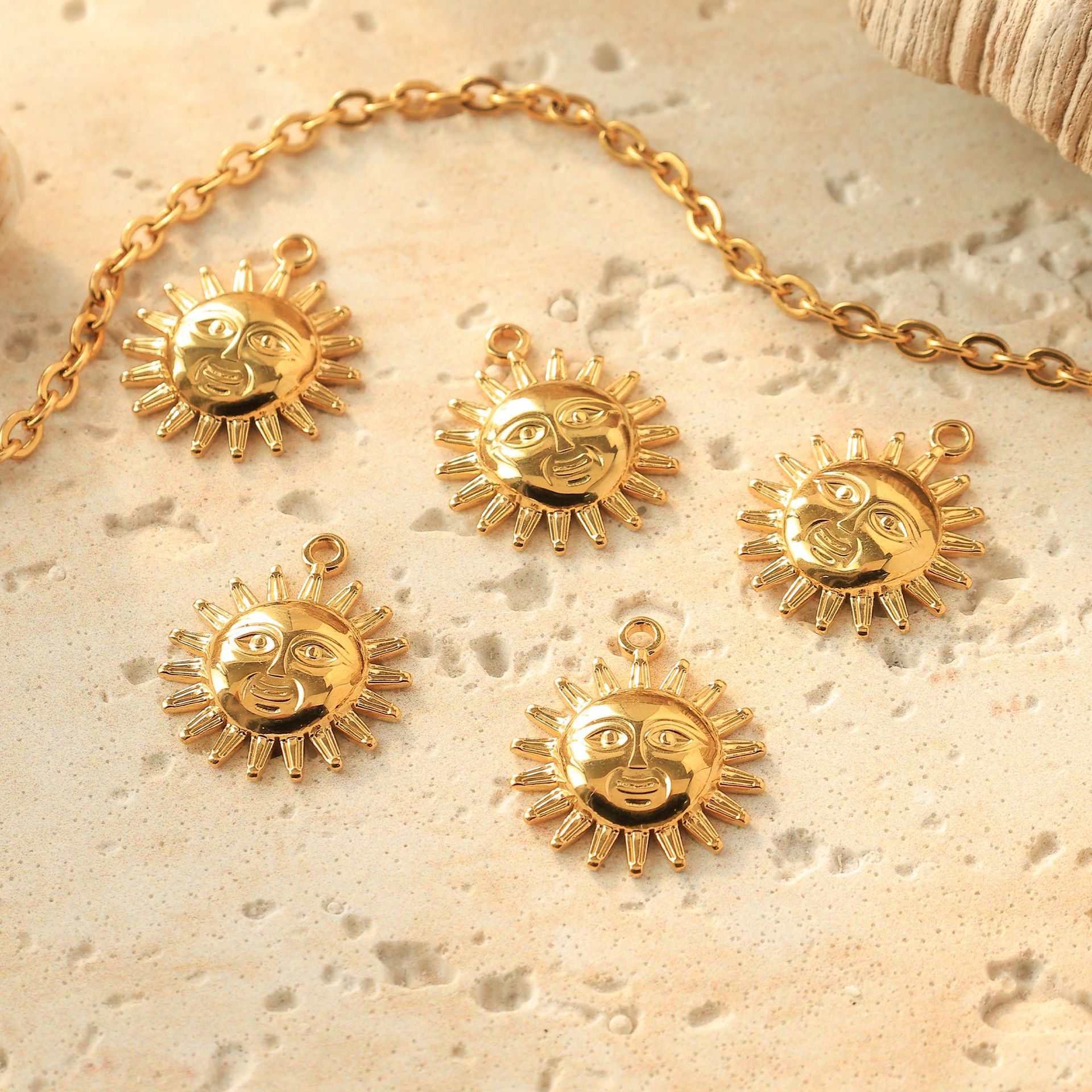 Stainless Steel Pendants, 304 Stainless Steel, Sun, Vacuum Ion Plating, DIY, more colors for choice, 18x22mm, 10PCs/Bag, Sold By Bag
