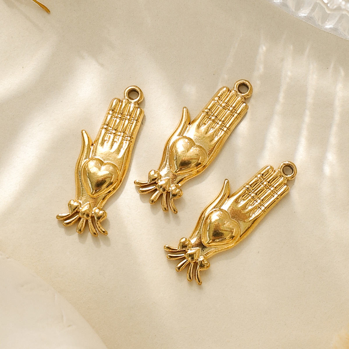 Stainless Steel Pendants, 304 Stainless Steel, Hand, gold color plated, DIY, golden, 10PCs/Bag, Sold By Bag