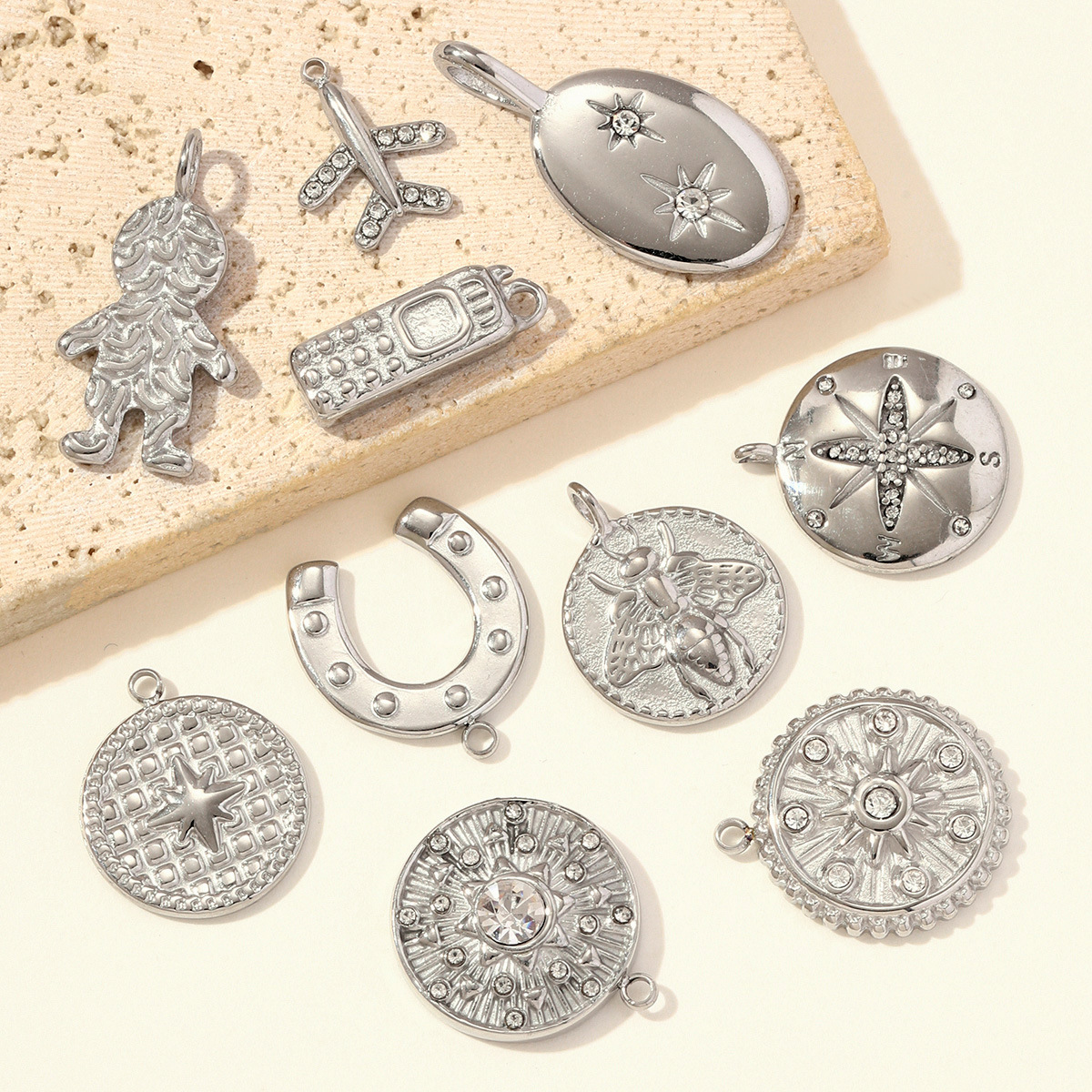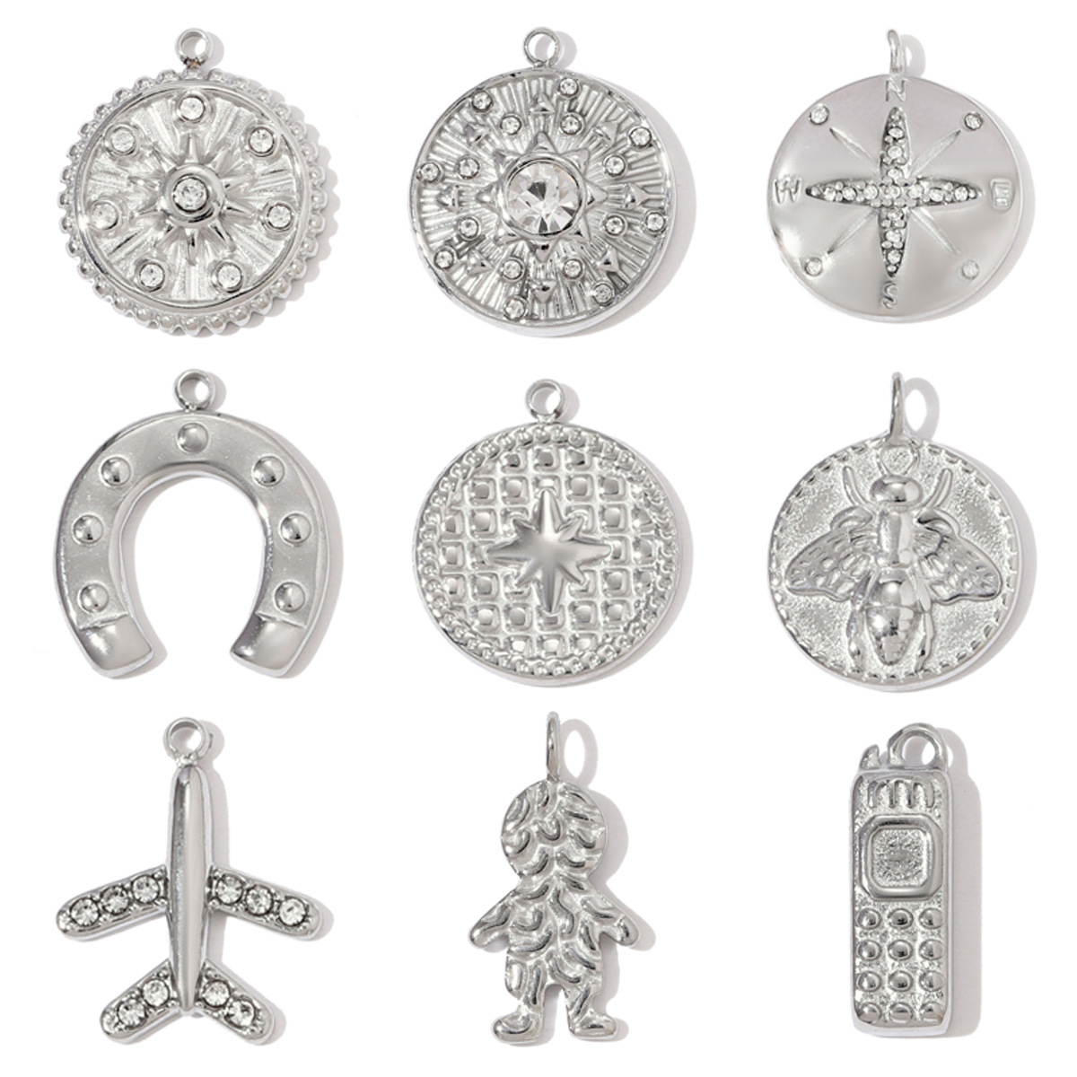 Stainless Steel Pendants, 304 Stainless Steel, polished, DIY & different styles for choice & with rhinestone, original color, 3PCs/Bag, Sold By Bag