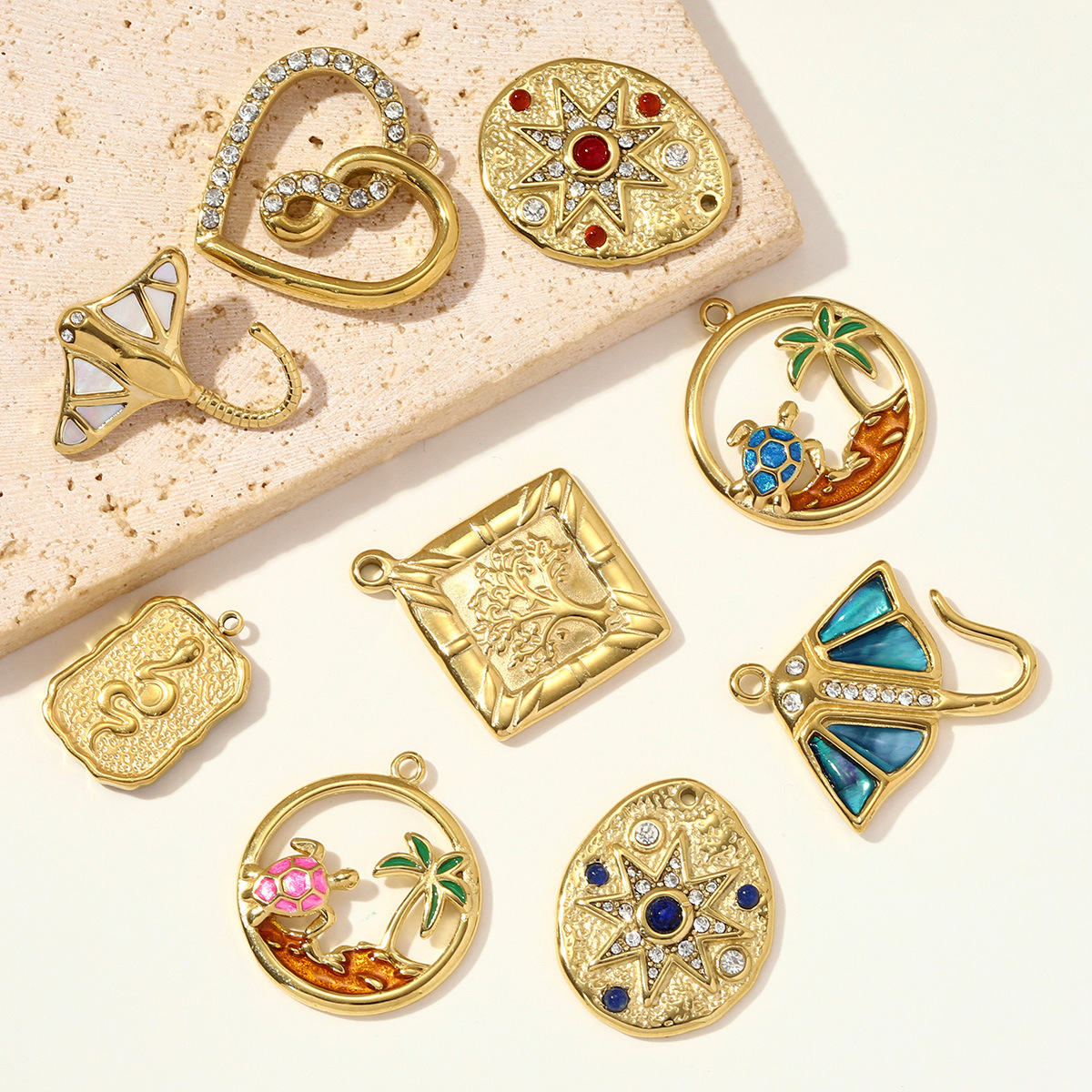 Stainless Steel Pendants, 304 Stainless Steel, with Gemstone & Shell, plated, DIY & different styles for choice & enamel & with rhinestone, 3PCs/Bag, Sold By Bag