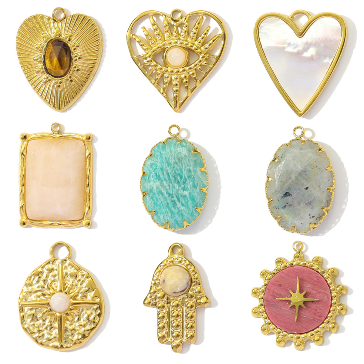 Stainless Steel Pendants, 304 Stainless Steel, with Gemstone & White Shell, gold color plated, DIY, more colors for choice, 3PCs/Bag, Sold By Bag