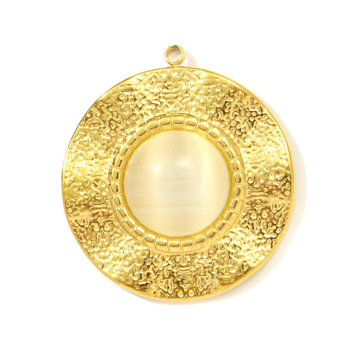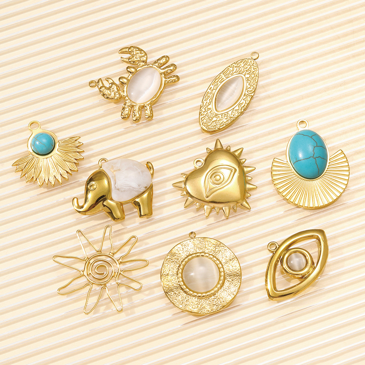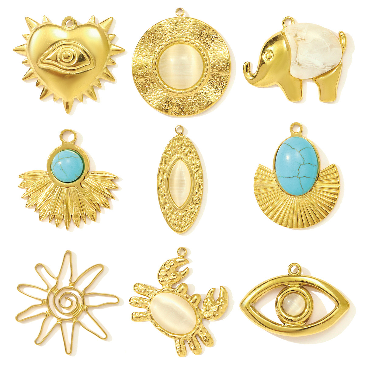 Stainless Steel Pendants, 304 Stainless Steel, with Natural Stone & Cats Eye & Resin, gold color plated, DIY, more colors for choice, 3PCs/Bag, Sold By Bag