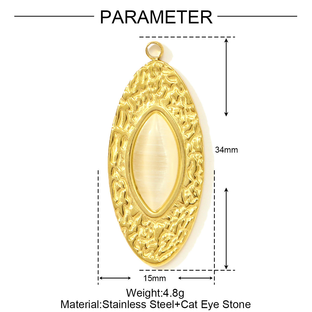 Stainless Steel Pendants, 304 Stainless Steel, with Natural Stone & Cats Eye & Resin, gold color plated, DIY, golden, 3PCs/Bag, Sold By Bag