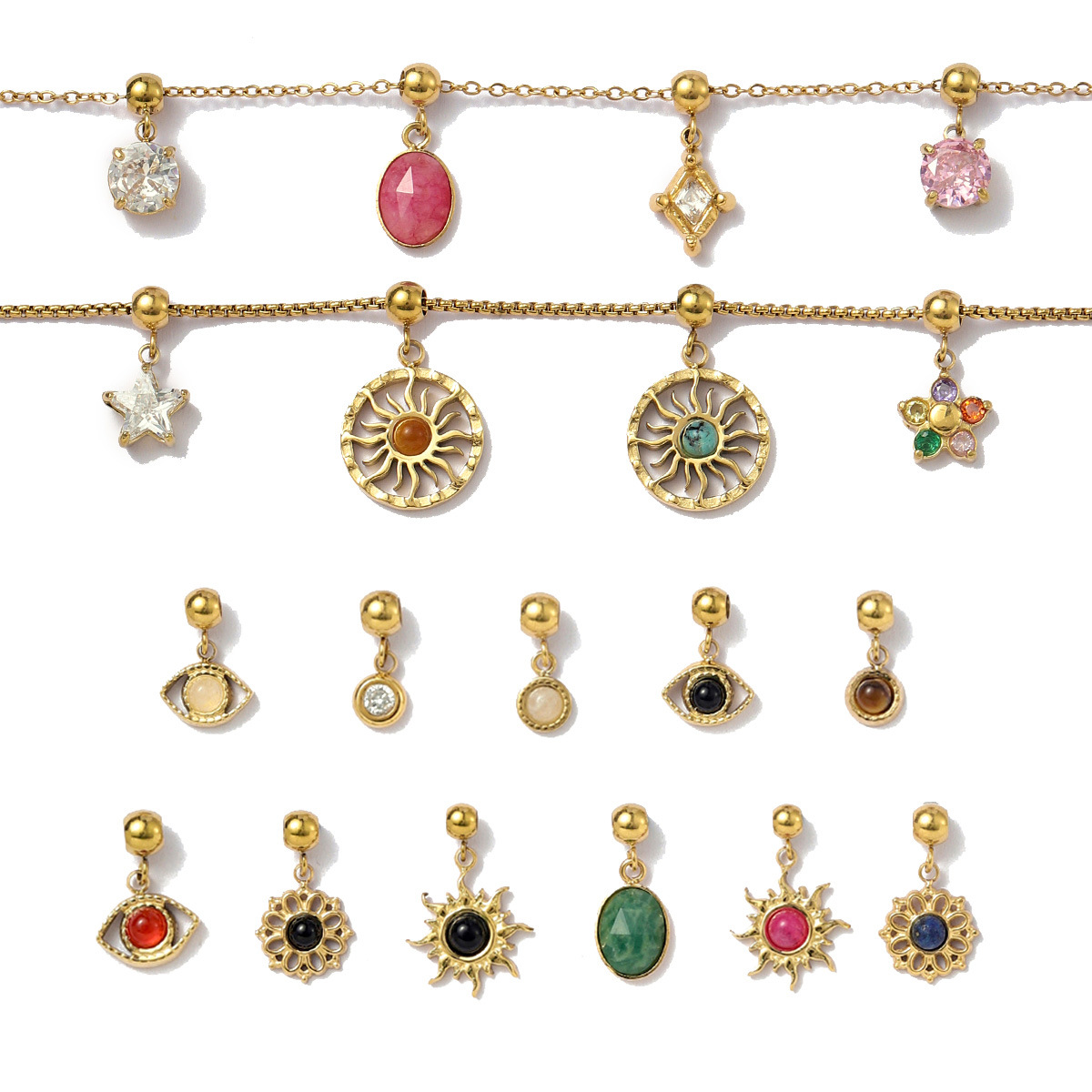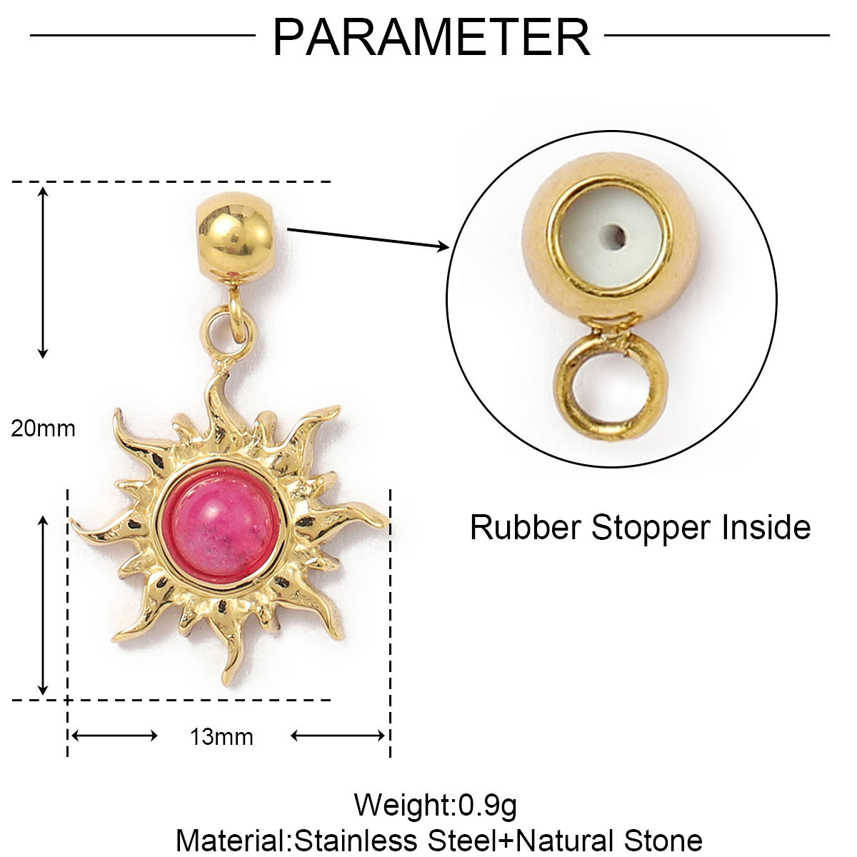 Stainless Steel Pendants, 304 Stainless Steel, with Natural Stone & Rubber, gold color plated, DIY & micro pave cubic zirconia, more colors for choice, 3PCs/Bag, Sold By Bag
