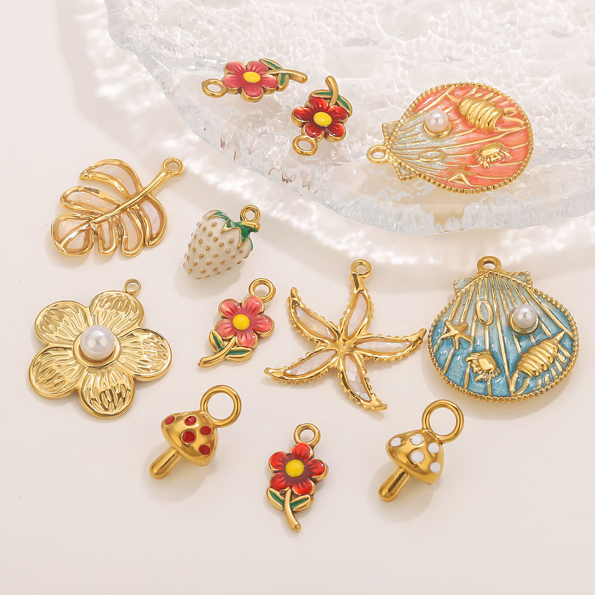 Stainless Steel Pendants, 304 Stainless Steel, with Plastic Pearl, gold color plated, DIY & different styles for choice & enamel, more colors for choice, 5PCs/Bag, Sold By Bag