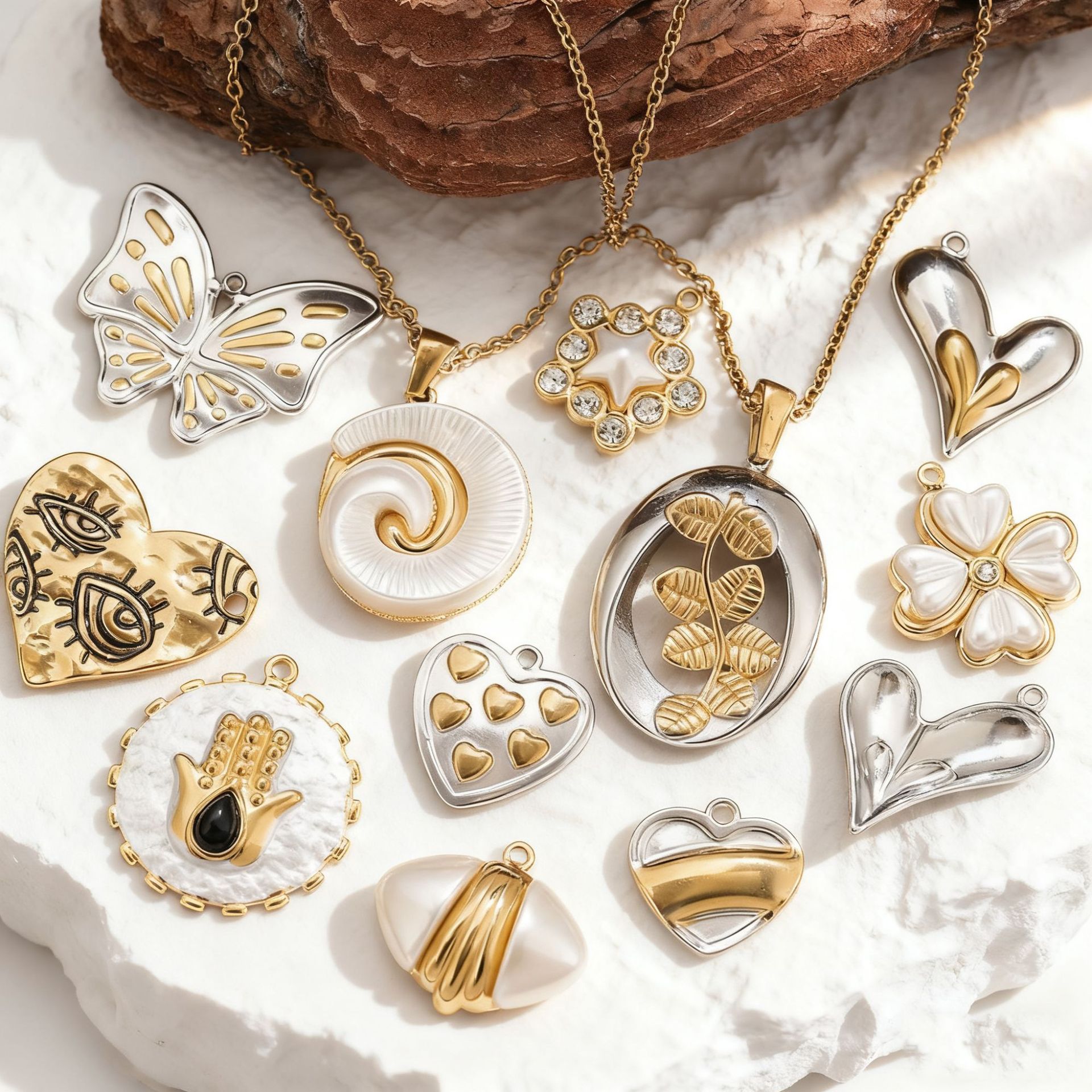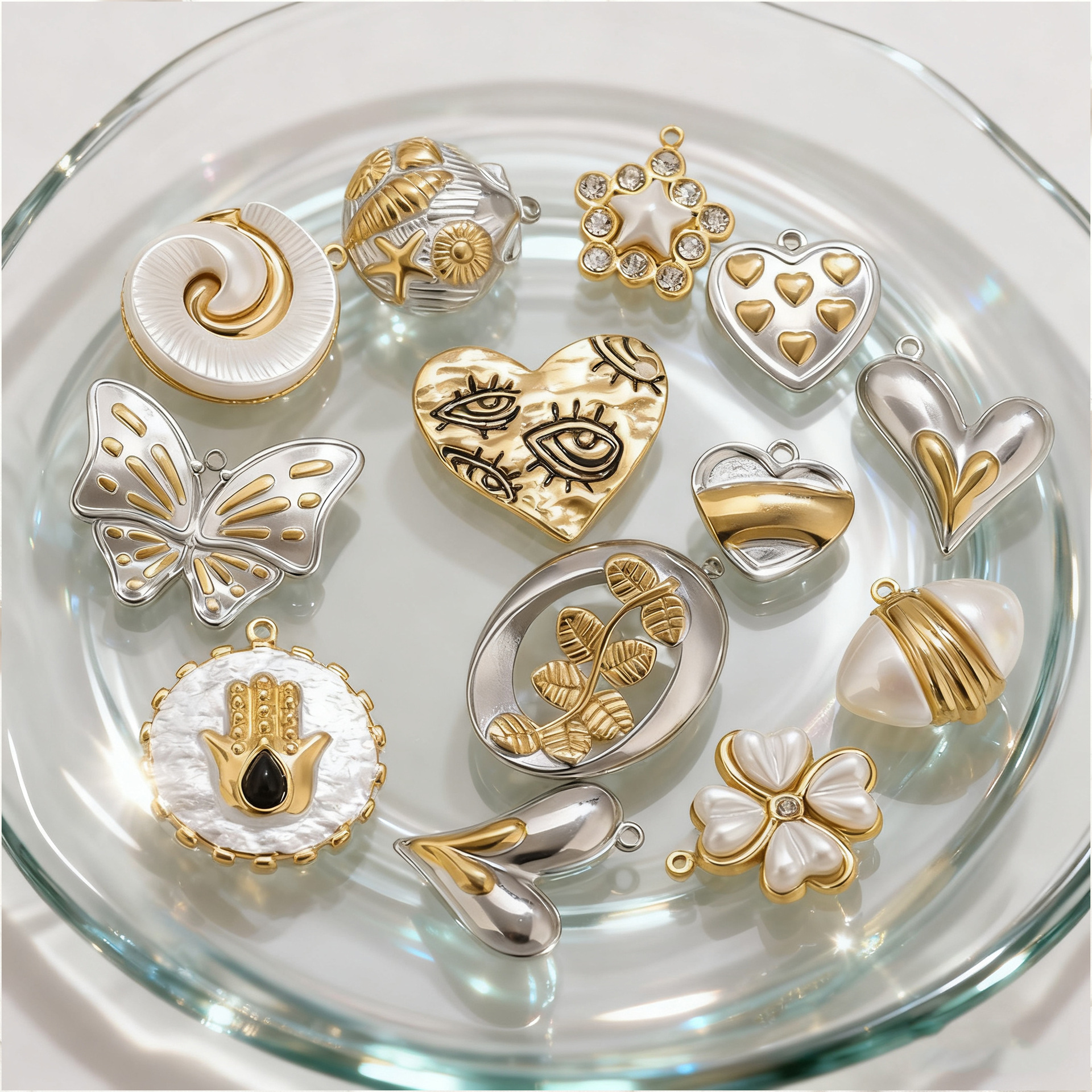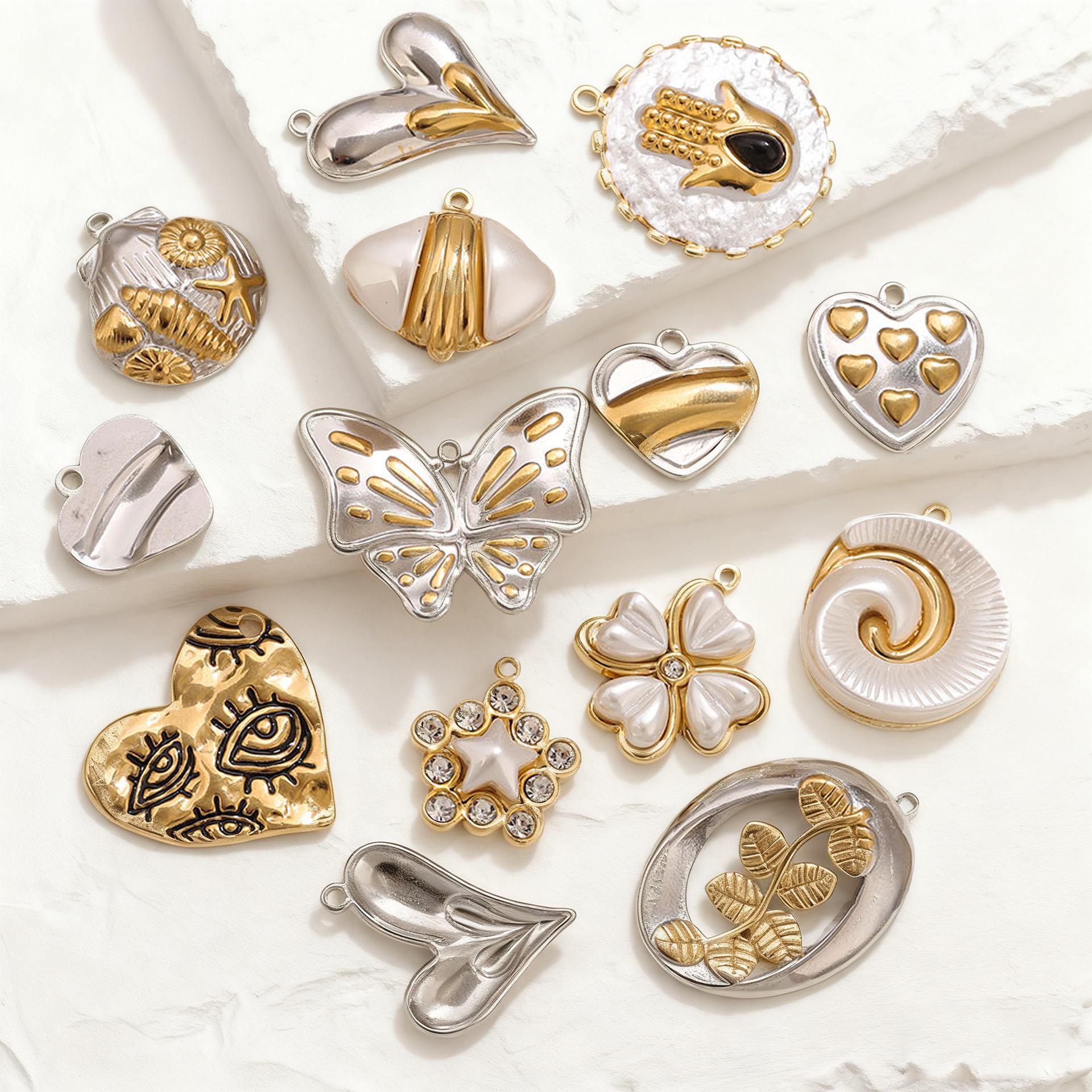 Stainless Steel Pendants, 304 Stainless Steel, with White Shell, Vacuum Ion Plating, DIY & different styles for choice & with rhinestone, Sold By PC