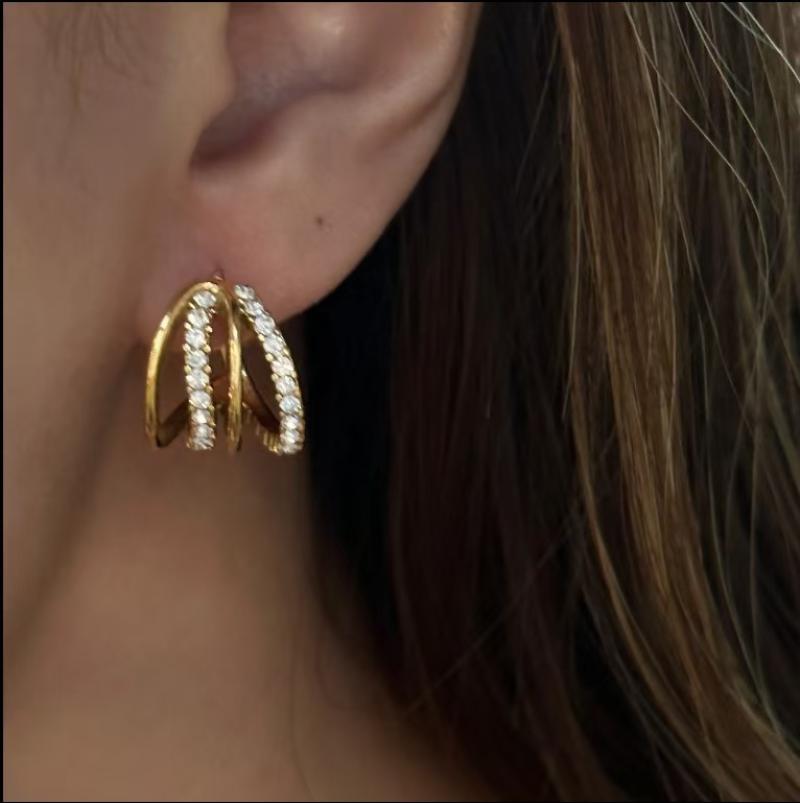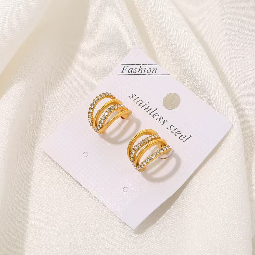 Stainless Steel Rhinestone Stud Earring, 304 Stainless Steel, plated, fashion jewelry & with rhinestone, Crystal Gold, Sold By Pair