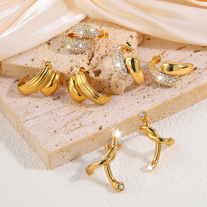 Stainless Steel Stud Earring, 304 Stainless Steel, plated, fashion jewelry & different styles for choice & for woman, golden, Sold By Pair