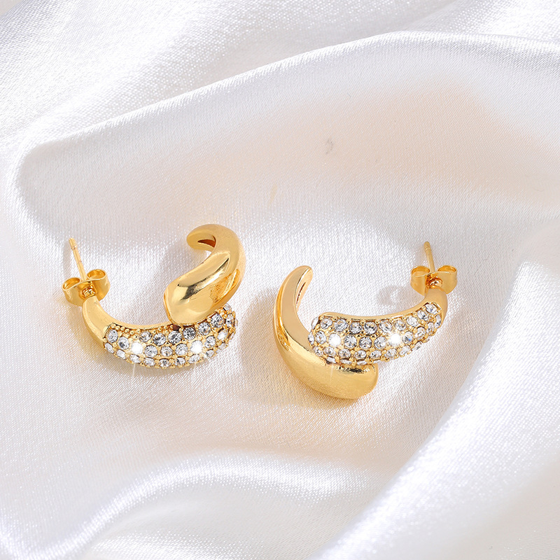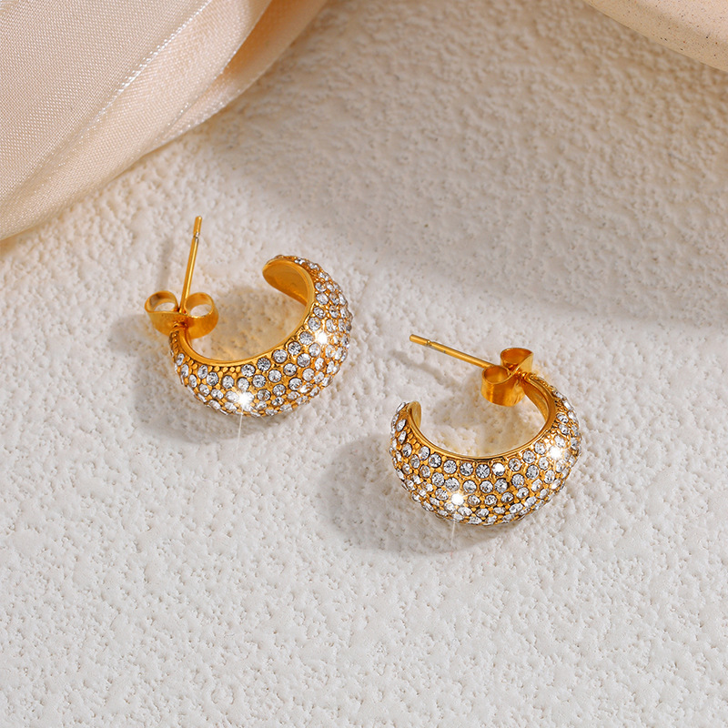 Stainless Steel Stud Earring, stainless steel post pin, Flat Round, with rhinestone