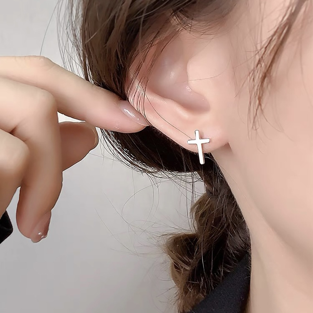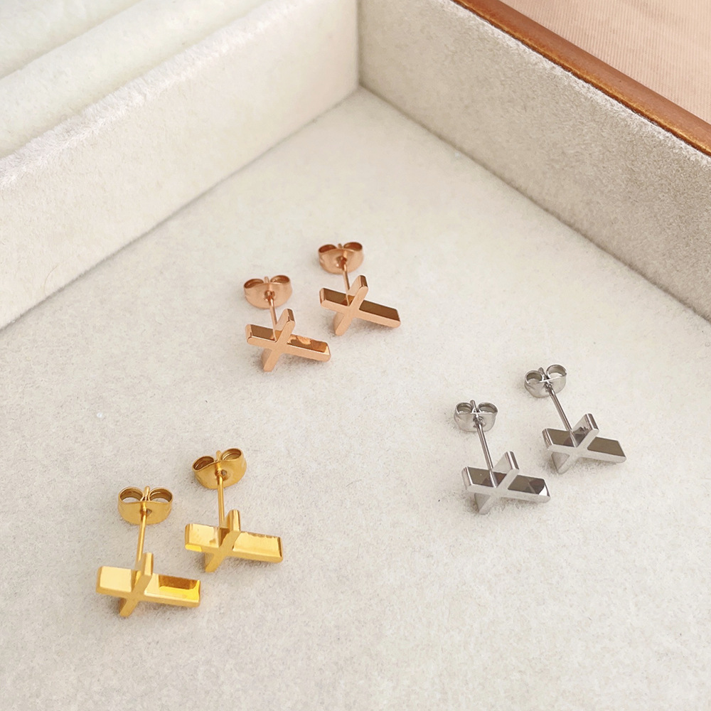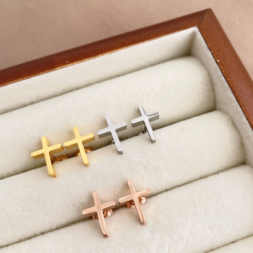Stainless Steel Stud Earring, 304 Stainless Steel, Cross, plated, fashion jewelry & for woman, more colors for choice, Sold By Pair