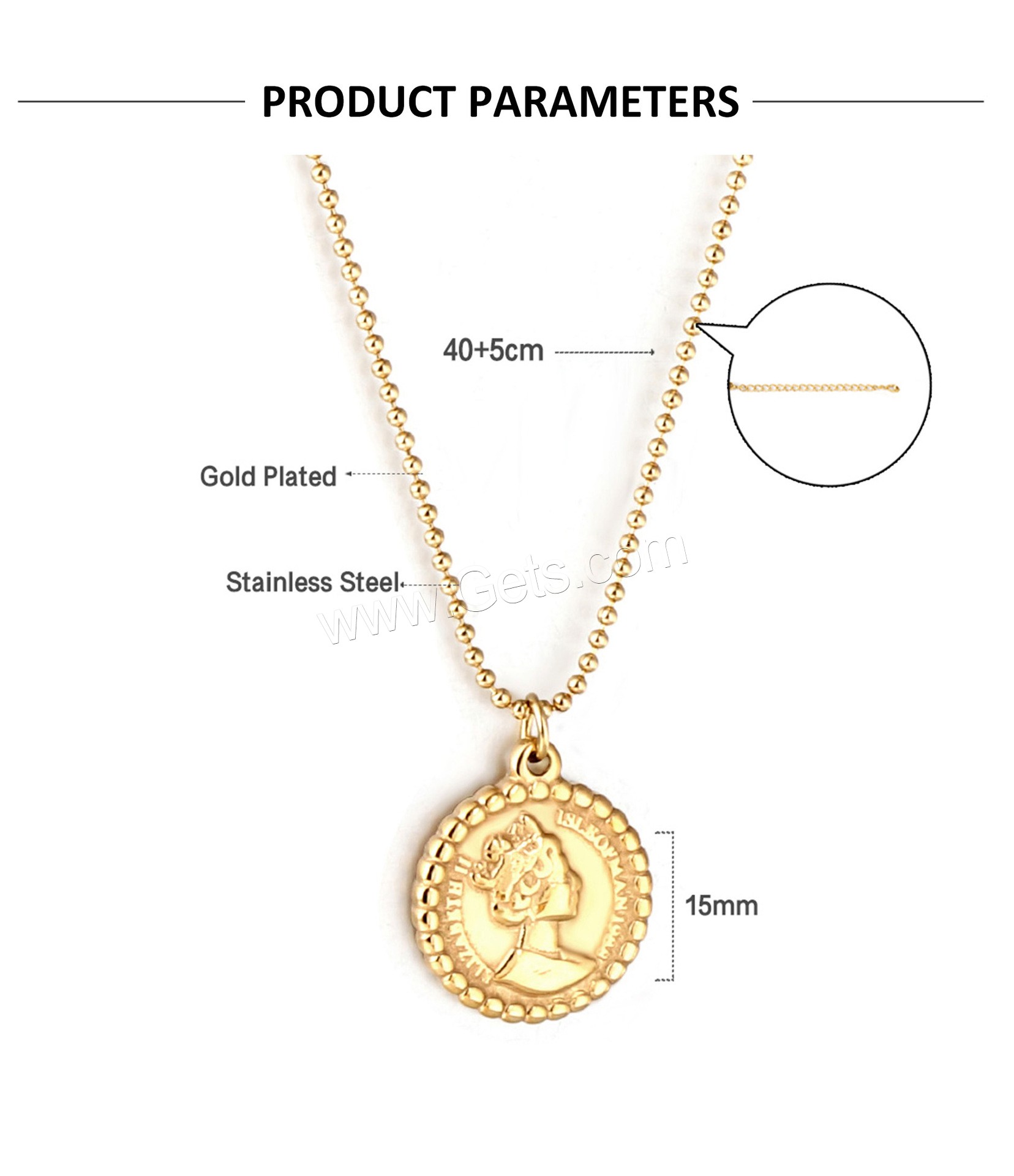 Stainless Steel Sweater Chain Necklace, 304 Stainless Steel, with 1.97inch extender chain, Vacuum Ion Plating, fashion jewelry & different styles for choice & for woman, golden, Length:Approx 15.75 Inch, Approx 17.32 Inch, Sold By Strand
